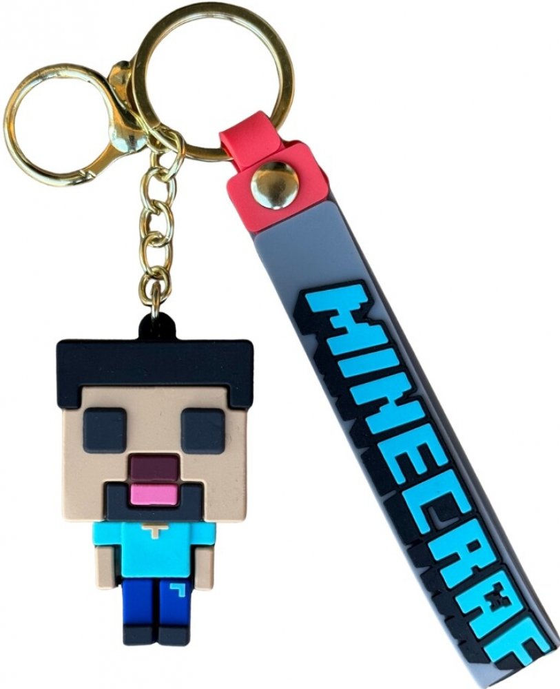 Dětská klíčenka s motivem postavičky ze seriálu Minecraft. Klíčenka má postavičku, gumové poutko, připevněné na kroužku na klíče, součástí je i karabina pro přípnutí.