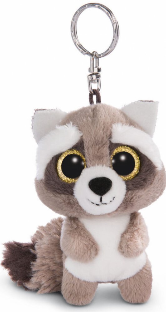 Zářivé zlaté třpytivé oči a roztomilý výraz obličeje s šedobílou maskou dělají z Mývala Clooneyho skvělou klíčenku. Z jeho zlatých třpytivých oček se budete rozplývat roztomilostí. Clooney se svým huňatým ocasem se na vás těší! Plyšový přívěsek na klíče.