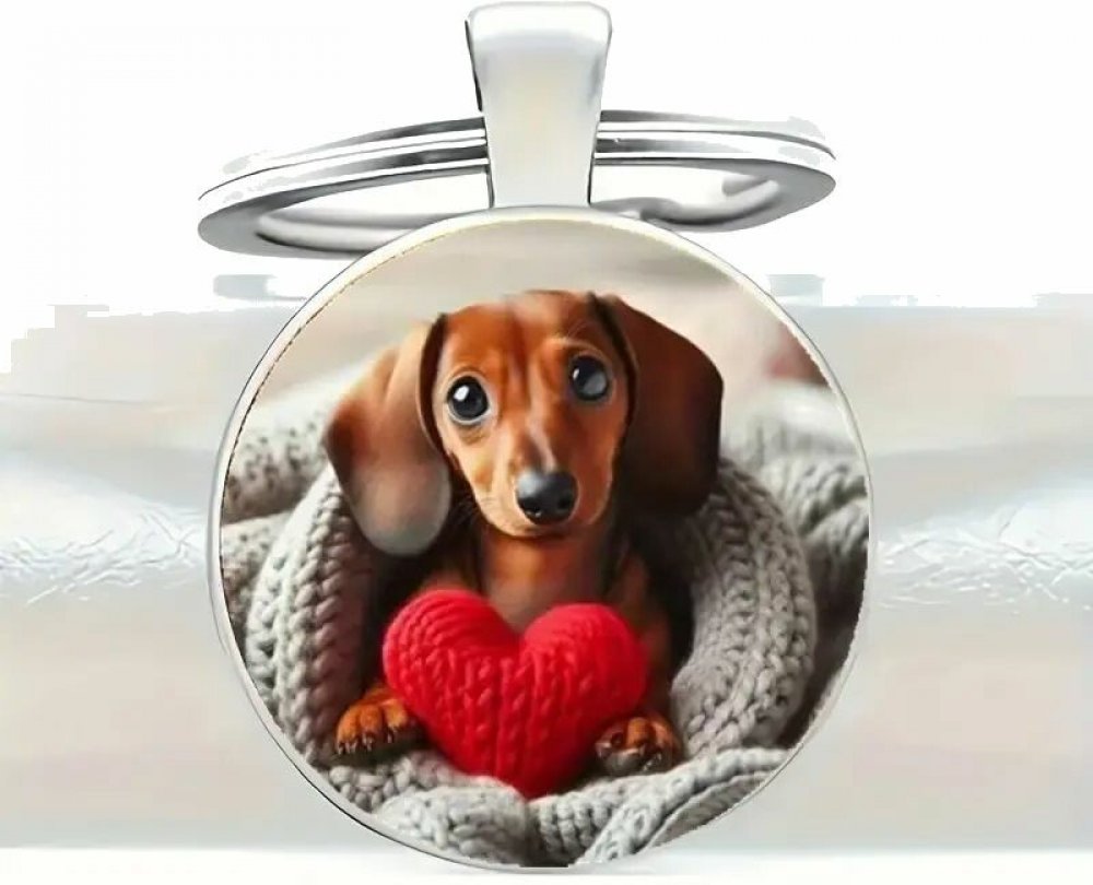 Stylový přívěsek na klíče se psem - jezevčíkem. Na přívěsku je roztomilý jezevčík se srdíčkem. Klíčenka s populárním plemenem jezevčík je vhodná pro všechny milovníky psů.