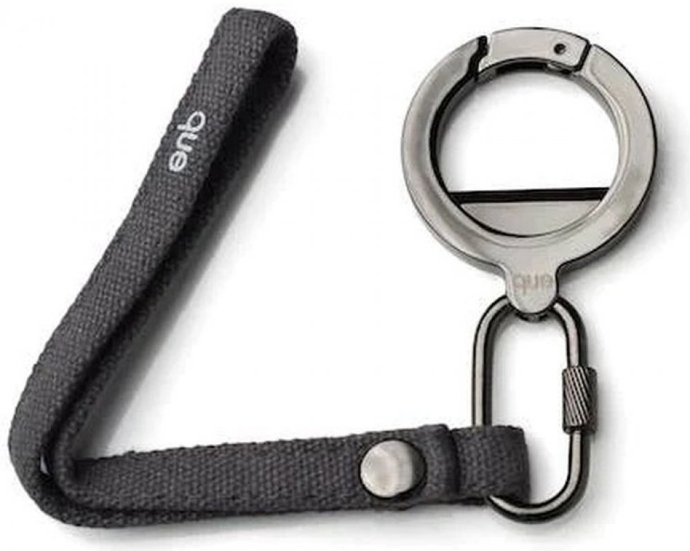 multifunkční klíčenka 3v1 pro každodenní použití s kovovou upevňovací karabinkou se šroubovacím uzávěrem, kroužkem na klíče, otvírákem na lahve a textilním šedým zápěstním poutkem
