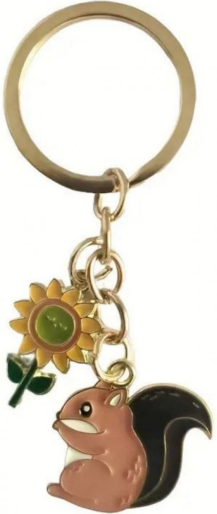 Roztomilá klíčenka - přívěsek na klíče - malá hnědá veverka s bílým bříškem a kytičkou, co se usmívá.