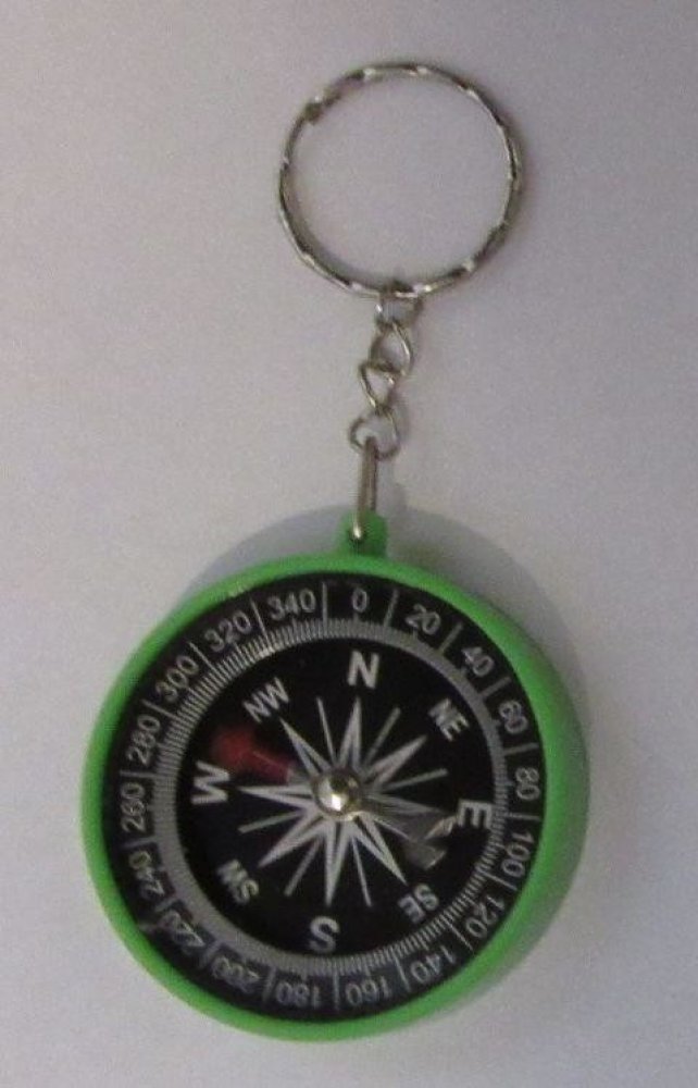 Materiál: plast, kov Průměr: 4,4 cm Celková délka: 9,5 cm Funkční klíčenka kompas s mizivou hmotností! Výrobek není hračka, obsahuje malé části, není vhodný pro děti mladší tří let.