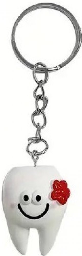 Klíčenka - přívěsek na klíče - zub holčička. Klíčenka je bílé barvy a je ve tvaru zoubku - holčičky s červenou kytičkou. Skvělý dárek pro všechny zubařky.