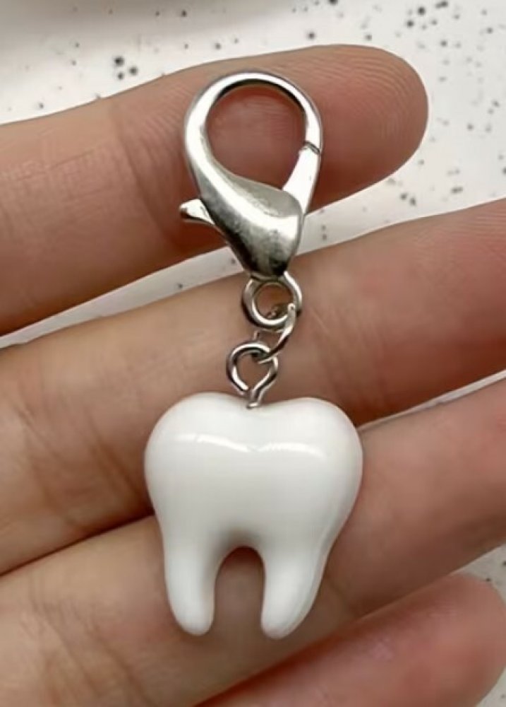 Klíčenka - přívěsek na klíče - zub Klíčenka je bílé barvy a je ve tvaru zoubku. Skvělý dárek pro všechny zubařky.