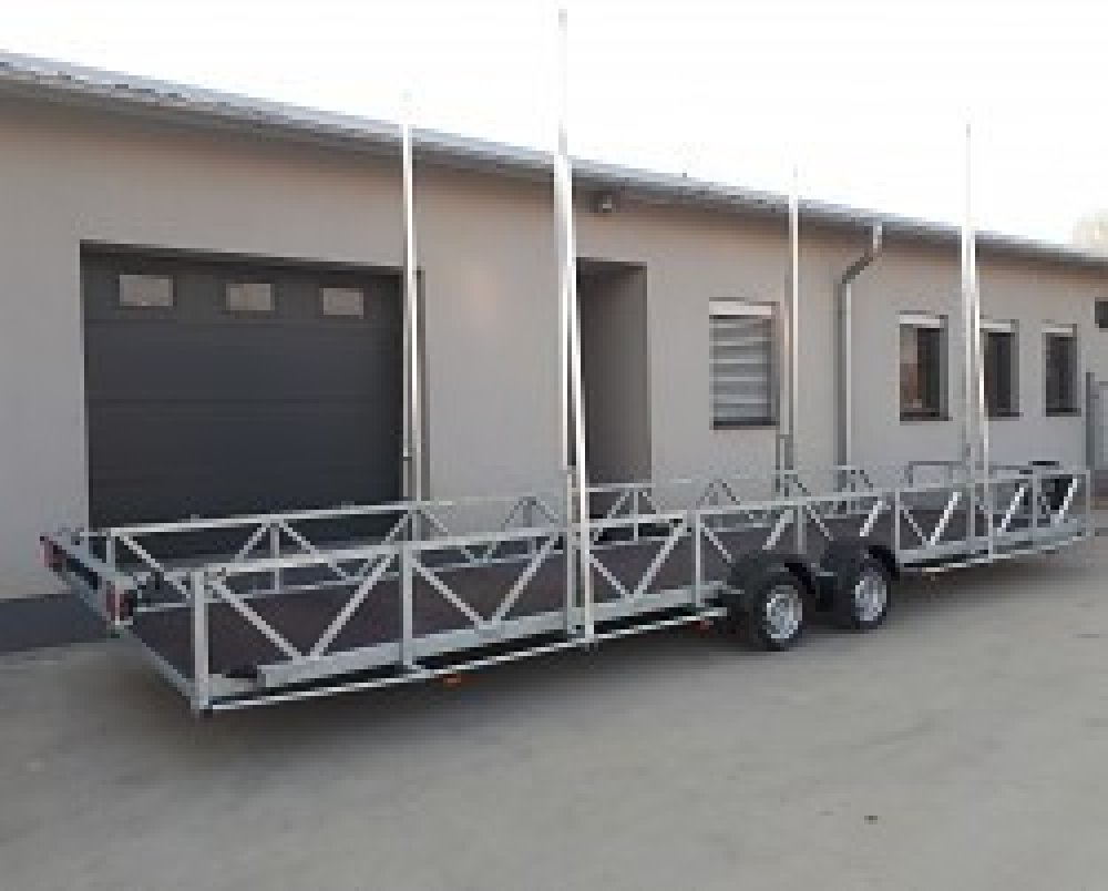 Speciální přívěs pro převoz bazénů s koly vedle ložné plochy. Přívěs je osazen brzdovým systémem AL-KO. Bočnice jsou z ocelových profilů, podlaha z vodovzdorné protiskluzové překližky. Konstrukce přívěsu žárové zinkování což dává přívěsu vysokou pevnost a dlouhou životnost. Zadní panel světel je výsuvný 1000 mm nebo odebírací. Standardně je přívěs vybaven nízkoprofilovými koly, aby byla dosažena co nejnižší výška ložné plochy.
