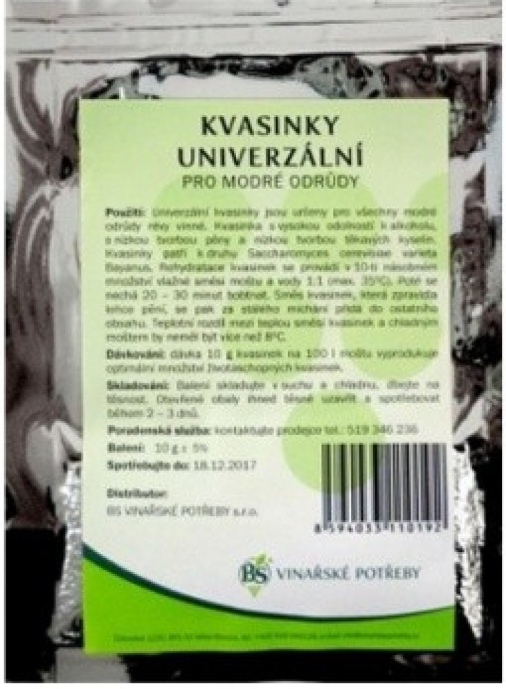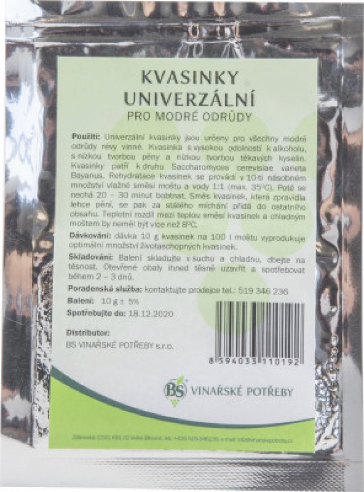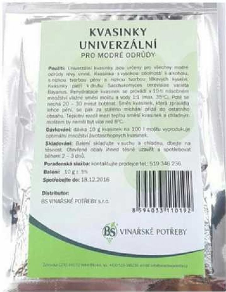 Univerzální kvasinky určeny pro všechny modré odrůdy révy vinné. Dávka 10 g kvasinek na 100 litrů moštu vyprodukuje optimální množství životaschopných kvasinek.Univerzální kvasinky určeny pro všechny modré odrůdy révy vinné. Dávka 10