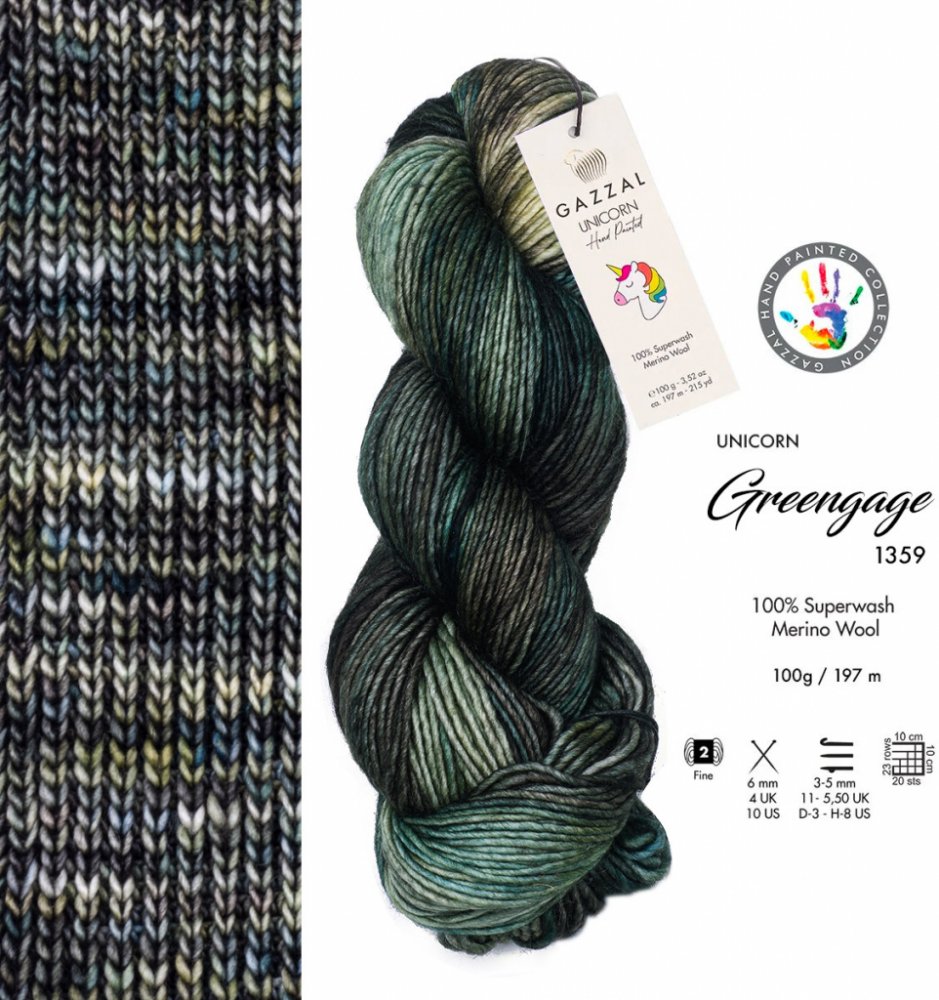 Gazzal Unicorn Hand Painted je speciální příze z ručně barvené 100% merino vlny. Je hladká, lesklá, velmi měkká a nekousavá. I přes vyšší cenu je merino vlna velmi oblíbená díky mnoha výhodám. Merino vlna je přírodní vlákno, které poskytuje dokonalý tepelný komfort – hřeje i vlhké.