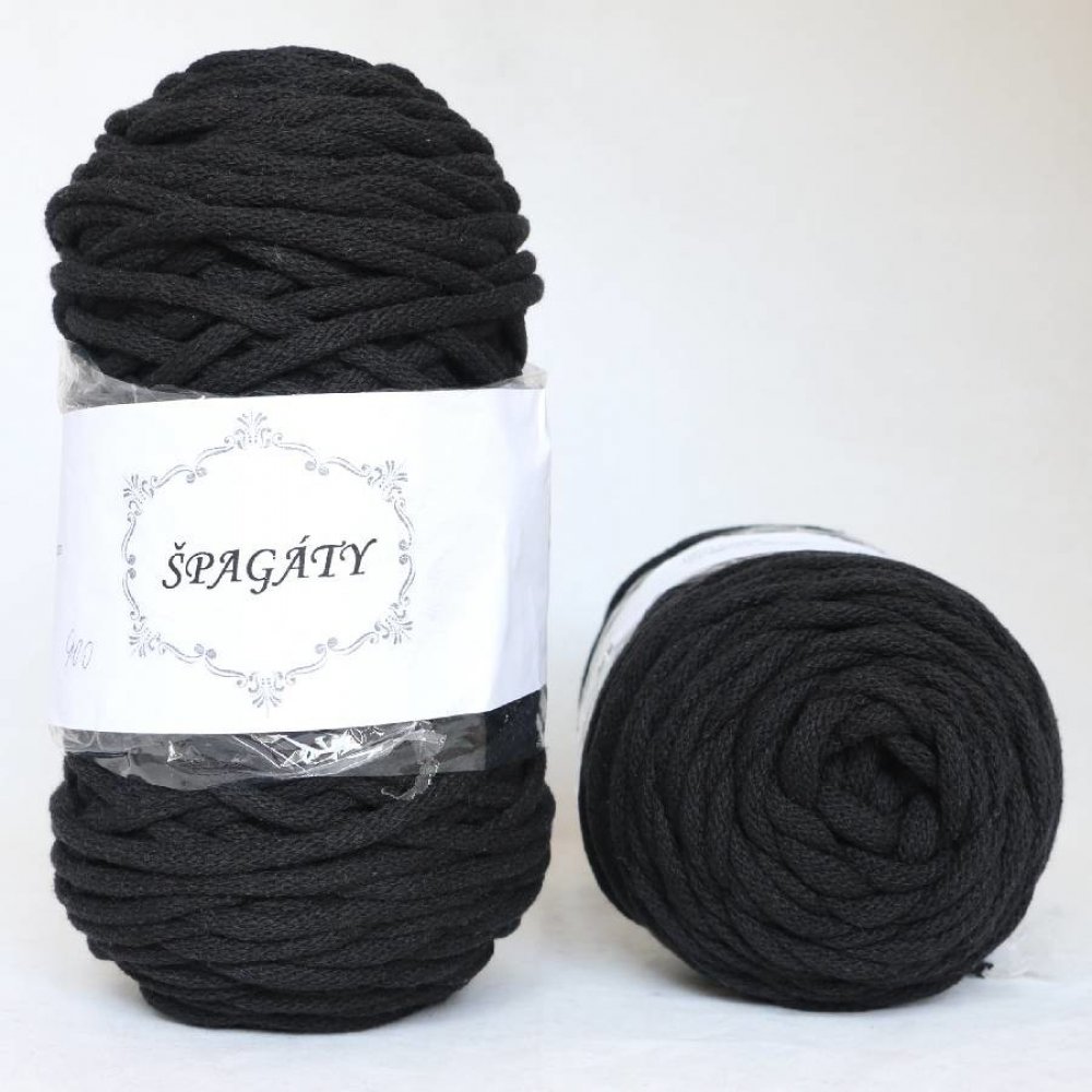 Špagáty 5 mm - 100% bavlna, klubíčko cca 460 g - 100 m, jehlice č. 15 - 20, háček č. 15 - 20