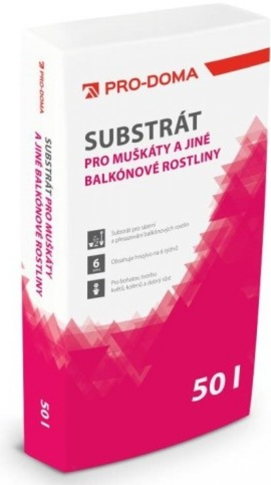 Substrát pro muškáty a jiné balkonové rostliny balený do PE obalů, dále jen substrát. Použití Substrát je vhodný pro sázení a přesazování muškátů a jiných balkónových rostlin. V substrátu je mechanickými postupy upravena struktura, pH substrátu a obsah základních živin. Složení kvalitní vytříděná vrchovištní rašelina (rašelina „bílá“) kompost vytříděný na požadovanou frakci minerální hnojivo Vlastnosti podporuje intenzitu kvetení podporuje dobrý a zdravý růst zlepšuje hospodaření s vodou obsahuje potřebné množství základních i stopových živin Balení V 50l plastových pytlech.