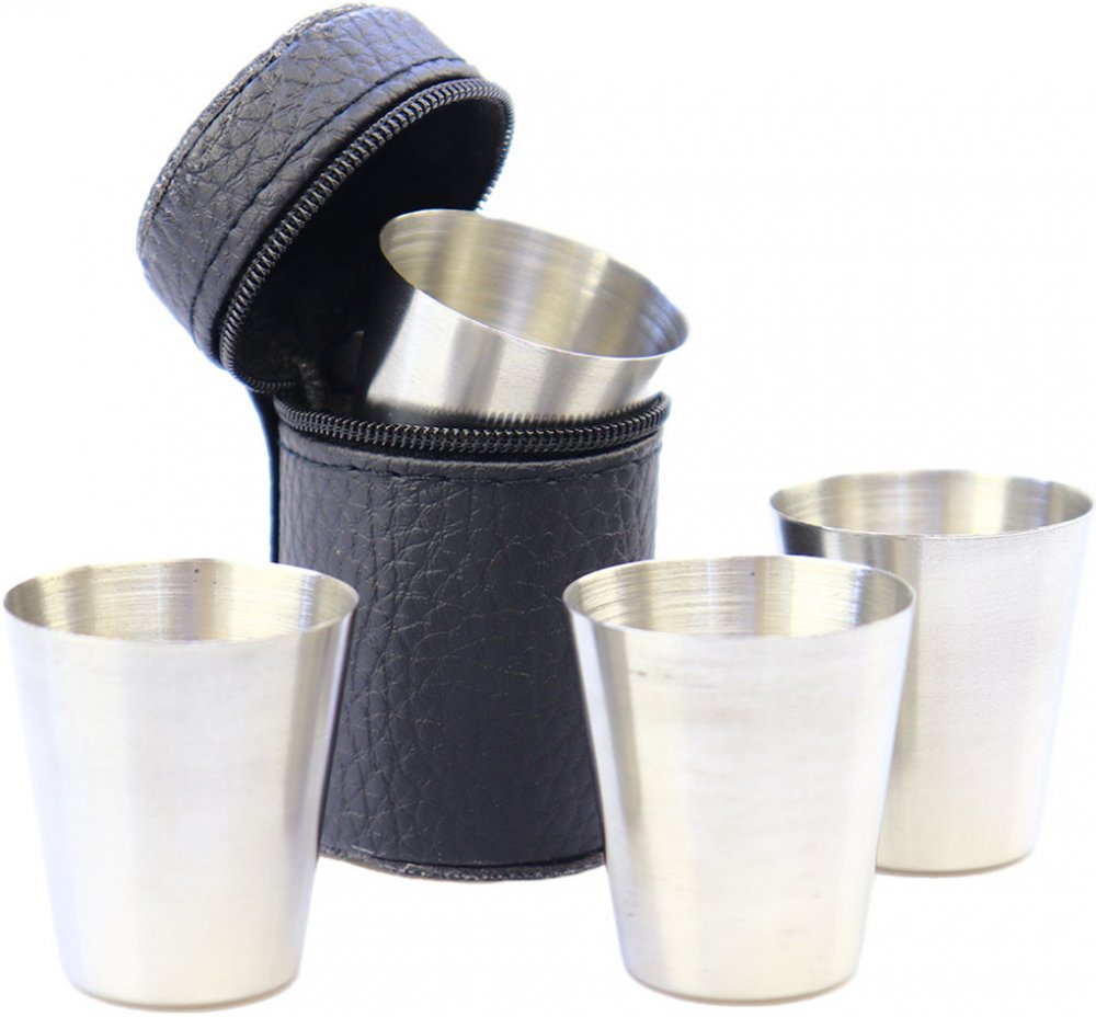 Cestovní nerezové panáky v černém pouzdře 150 ml, 4 ks