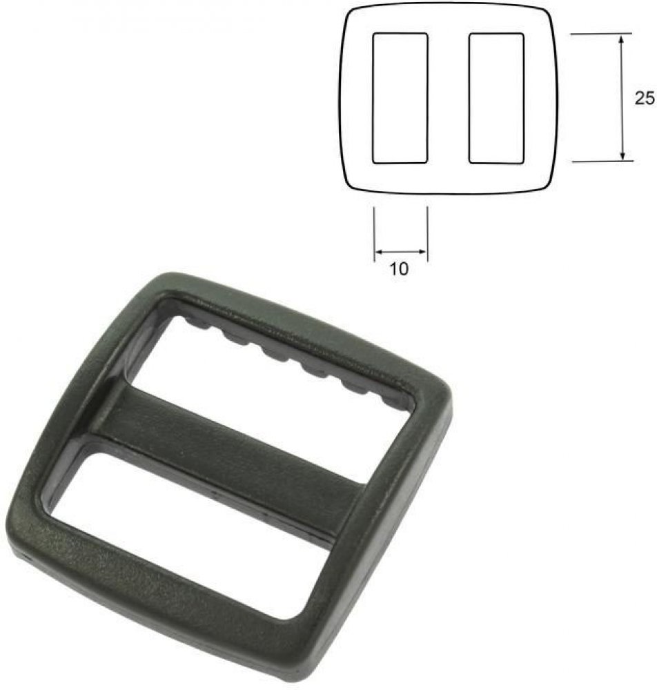 Plastová průvlečná spona (průvlečka, posuvka, plastový posunovač, průvlek nebo zkracovadlo) s dokonale hladkými okraji.