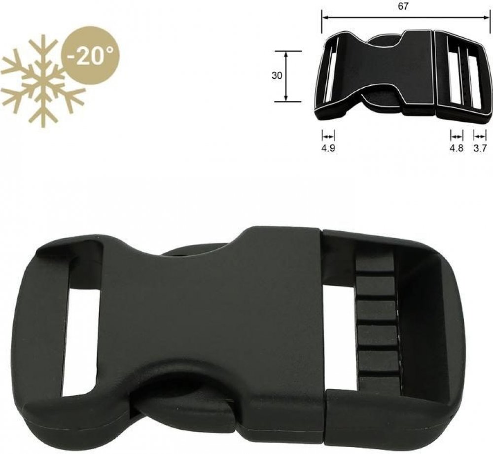 Tento pevnostní plastový trojzubec je konstruován tak, aby popruh ve sponě neprokluzoval. Speciálně tvarovaná střední příčka spony drží popruh vždy na svém místě. Lze jej tedy použít bez průvlečné spony a proto je ideální pro výrobu kvalitních postrojů pro sportovní aktivity.