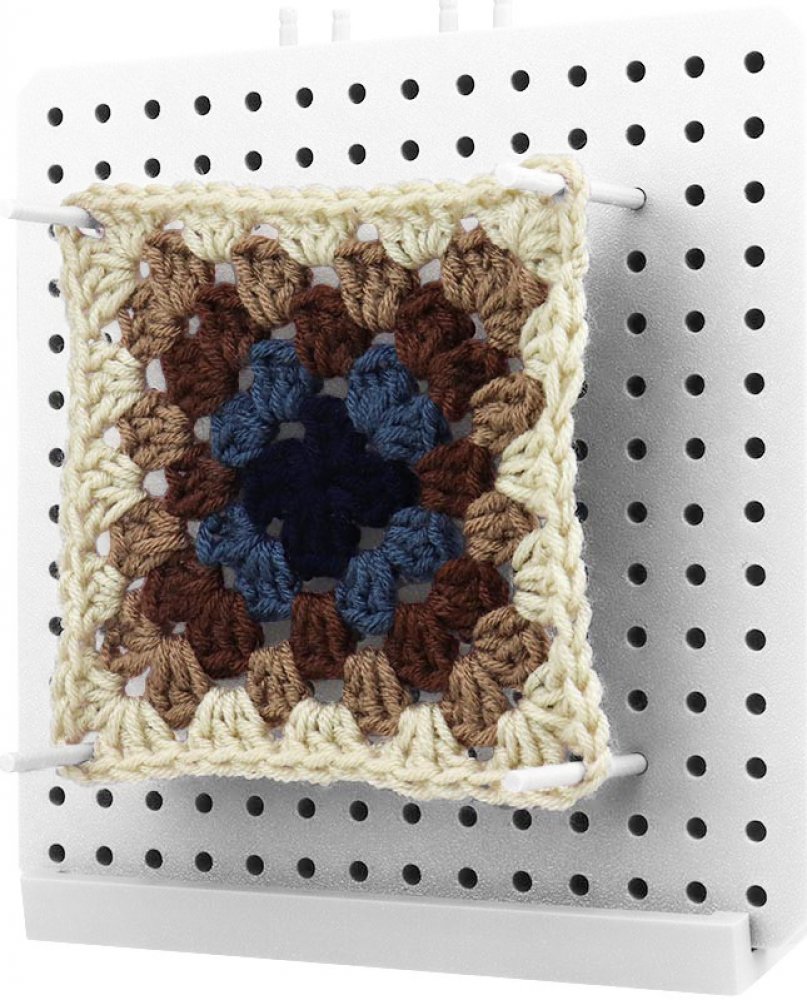 Použití: Po dokončení háčkování položte čtverec na podložku, lehce jej navlhčete (například pomocí rozprašovače), a poté pomocí kolíků připevněte okraje čtverce k podložce tak, aby byl roztažený do požadovaného tvaru. Nechte čtverec na podložce vyschnout. Jakmile je suchý, bude držet svůj tvar, což usnadňuje další práci na vašem projektu. Výsledné blokování zajišťuje, že vaše hotové projekty vypadají úhledně a rovnoměrně.