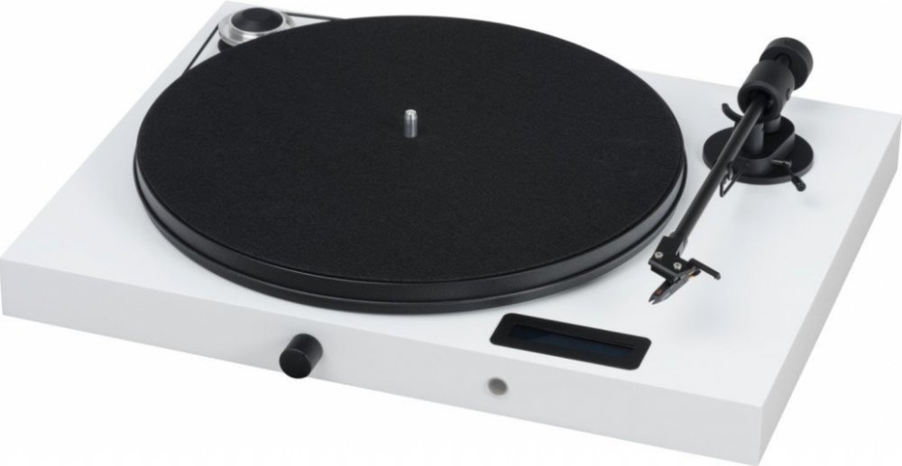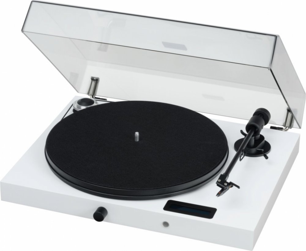 Gramofon "vše v jednom". Bluetooth, linkový vstup, zesilovač (2 x 50 W, 4 Ohmy), phono předzesilovač, linkový výstup pro nahrávání, displej, předinstalovaná značková přenoska s eliptickým hrotem Ortofon OM5e Pro-Ject JUKE BOX E je gramofon s phono předzesilovačem, Bluetooth přijímačem a integrovaným zesilovačem v jednom šasi, vyžadující pouze připojení páru reproduktorů pro vytvoření kompletního systému. Pokud jste si mysleli, že startovací systém musí být komplikovaný, JUKE BOX E dokazuje opak. JUKE BOX E je z výroby kompletně přednastavený a po připojení reproduktorů můžete okamžitě začít poslouchat hudbu. Dodáván je v povrchové úpravě s vysokým leskem. Součástí je i protiprachový kryt. JUKE BOX E navíc umožňuje i připojeních dalších komponent hudebního systému přes digitální vstup, analogový vstup nebo i bezdrátově přes Bluetooth. Potřebné údaje jsou zobrazovány na displeji a vše lze pohodlně řídit přes dálkové ovládání.