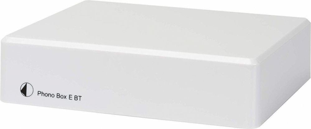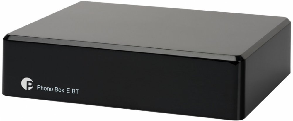 Gramofonový MM předzesilovač malých rozměrů. Phono Box E BT nabízí dva oddělené vstupy, jeden vstup pro gramofon, jeden linkový vstup a dva samostatné výstupy (linkový + bluetooth vysílač). Lze jej použít jako běžný MM phono předzesilovač, který lze připojit k audio systému prostřednictvím jeho vstupu s linkovou úrovní, nebo může být využit jako vysílač Bluetooth signálu. Konstrukce je inspirovaná panem Dr. Sýkorou, využívá SMD obvody a speciální komponenty s nízkou úrovní šumu. Vnitřní kovové stínění je umístěno v poměrně malých rozměrech které umožňují instalaci v blízkosti gramofonu. Zlacené konektory na zadní části podrthují výkon tohoto předzesilovače. Napájecí zdroj je součástí balení.