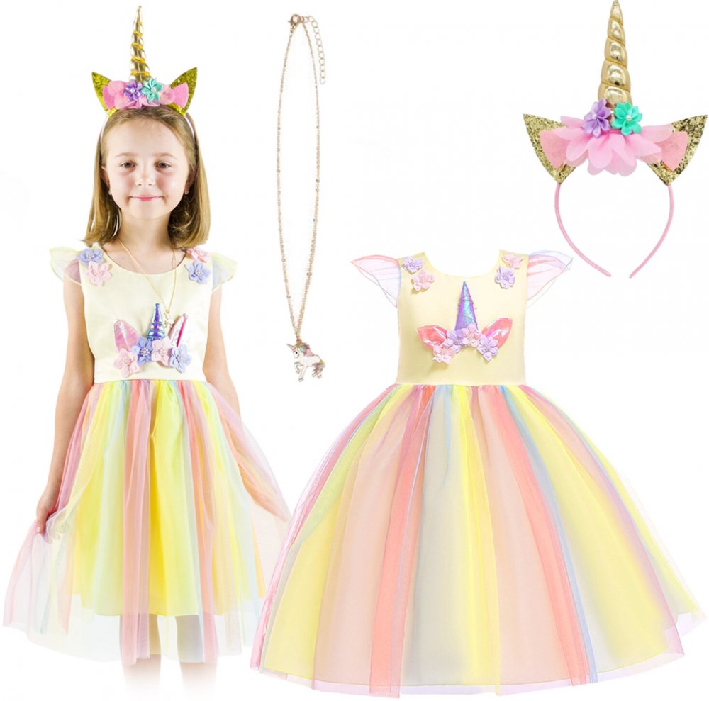 ⚡ OKOUZLUJÍCÍ A MAGICKÉ DETAILYV těchto šatech není místo pro nudu. Každý detail, každá nitka a každý lem je pečlivě navržen tak, aby pro vás vytvořil šaty, které jsou nejen krásné, ale také jedinečné.Naše opulentní souprava obsahuje:1️⃣ pohodlnou čelenku z rohu jednorožce - třpytivé zlaté uši, jemné květy a kouzelně třpytivý roh.2️⃣ dlouhý (pro pohodlí dítěte) "zlatý" náhrdelník zakončený přívěskem jednorožce.3️⃣ světle krémový top s našitou duhovou aplikací jednorožce4️⃣ dvě vrstvy tylu: duhový duhový tyl s lesklým žlutým tylem pod ním a všitým bavlněným slipem pro pohodlí a krásnou úpravu šatů5️⃣ vázané širokou šerpou pro úpravu velikosti v pase a vytvoření ozdobné mašle.6️⃣ estetické a pečlivé detaily ve velmi dětsky jemných barvách .