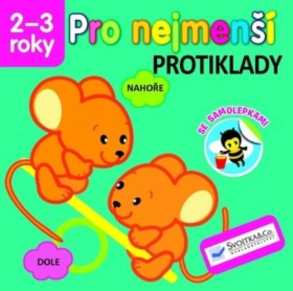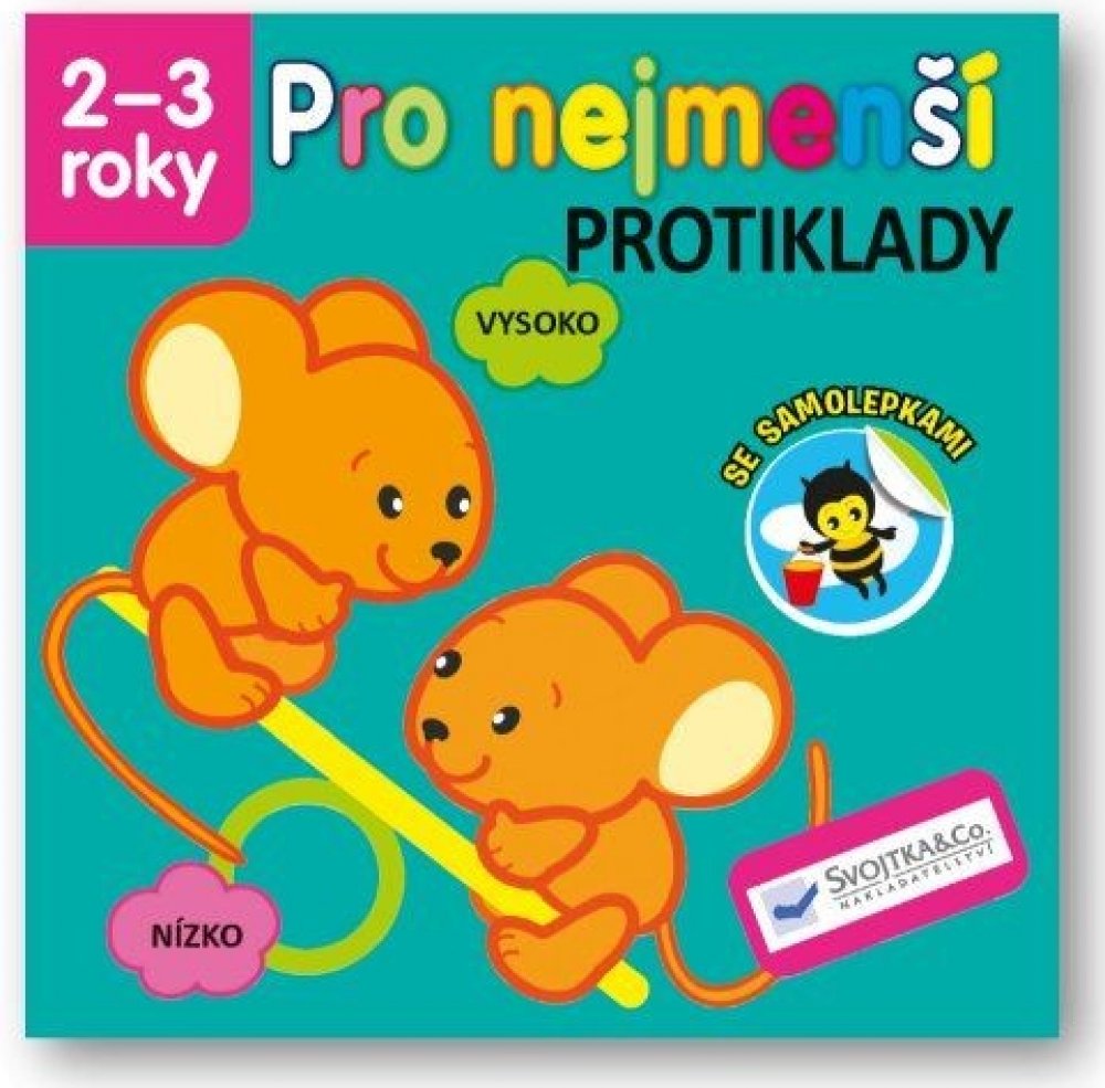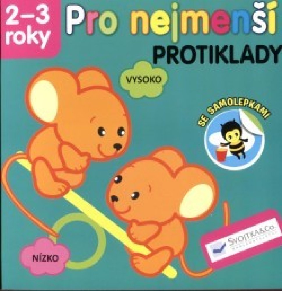Který slon je malý a který velký? Ukaž, který košík je plný a který prázdný. Která housenka je krátká a která dlouhá? Řekni, co je prázdné a co plné. Ukaž, která myška je vysoko a která nízko. Dolep samolepky na správná místa. Tyto a mnohé další úkoly najdete v této knížce, která je určena pro nejmenší děti od 2 do 3 let. Hravou formou se tak seznámí s protiklady a ještě zjistí svou šikovnost a postřeh při výběru a nalepování samolepek.Který slon je malý a který velký? Ukaž, který košík je plný a který prázdný. Která housenka je krátká a která dlouhá? Řekni, co je prázdné a co plné. Ukaž, která myška je vysoko a která nízko. Dolep samolepky na správná místa. Tyto a mnohé další úkoly najdete v této knížce, která je určena pro nejmenší děti od 2 do 3 let. Hravou formou se tak seznámí s protiklady a ještě zjistí svou šikovnost a postřeh při výběru a nalepování samolepek.