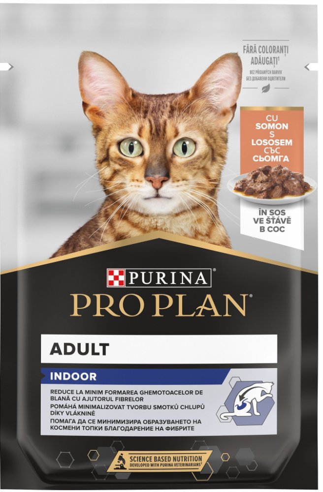 Kompletní krmivo pro dospělé kočky s lososem ve šťávě. Kontroluje tvorbu smotků chlupů v žaludku a bezpečně a jemně posouvá spolykané chlupy trávicím traktem. Obsahuje prebiotika, která pomáhají snižovat zápach z kočičí toalety. Vysoký obsah bílkovin pro prevenci nadváhy a udržení štíhlé tělesné kondice.