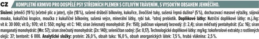 Nestlé Česko pro dospělé pro střední plemena s běžnou aktivitou jehněčí Pro Plan 14 kg superprémiové suché Sensitive Digestion 26 % rýže 14 kg ze Švýcarska střední (200-500mg) 16 % 2.5 % 7.5 % standardní standardní (<25%) základní pasivní (prebiotika) částečná (země výroby)