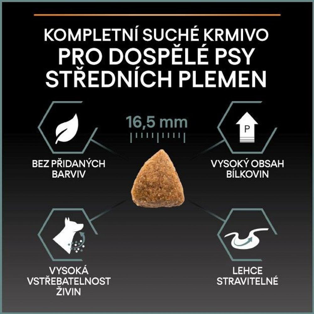 Krmivo Purina PRO PLAN® Sensitive Digestion MEDIUM ADULT bylo vyvinuto pro dospělé psy středních plemen (s hmotností 10–25 kg). Granule obsahují vitamin D a minerální látky, které podporují silné a zdravé zuby. Krmivo má velký podíl vysoce kvalitního jehněčího, a tak zajišťuje optimální výživu středně velkých psů od 12 měsíců věku do 7 let. Následně byste měli přejít na produkty z řady Age Defence.