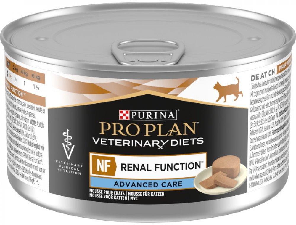 Krmný návod: Doporučená doba používání je od počátku do 6 měsíců. Před použitím nebo před prodloužením doby používání se doporučuje vyžádat si stanovisko veterinárního lékaře. Voda musí být vždy k dispozici. Při kombinovaném krmení suchým a vlhkým krmivem se řiďte doporučením na obale granulí PPVD NF Renal Function Advanced Care. Kočky s hmotností nad 6 kg: na každý další kg tělesné hmotnosti navyšte denní krmnou dávku o ¼ konzervy