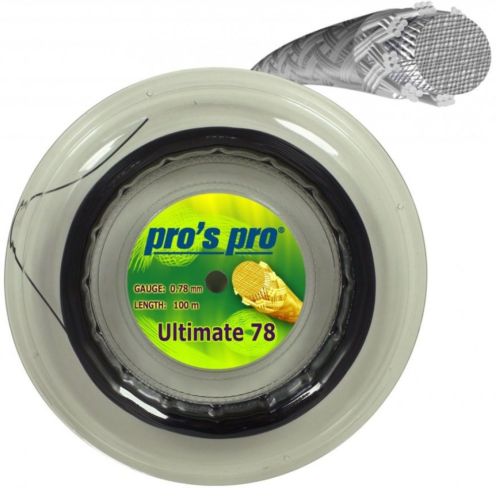 Badmintonový výplet Pro´s Pro Ultimate 78 100m má multifilamentní jádro vyrobeno z vysoce kvalitního mikro vlákna, který je zabalen dvěma vrstvami. Výpplet vyniká vysokou odolností, rychlostí a dobrým hermím pocitem.