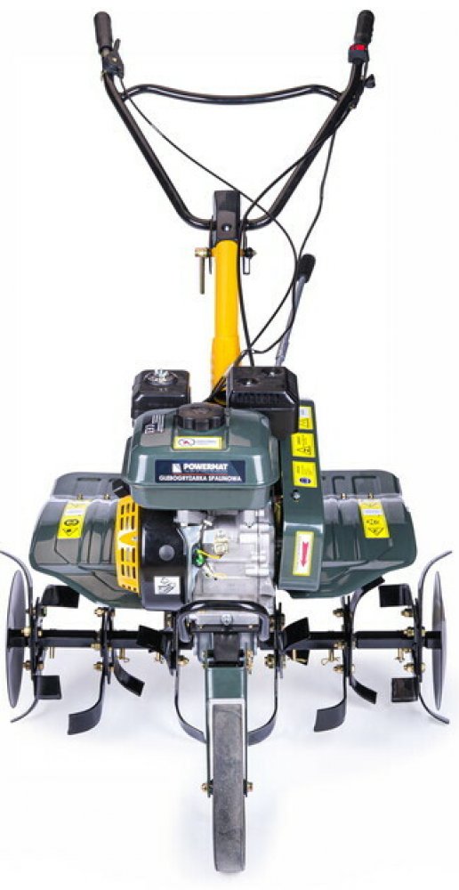 Benzínový kultivátor 5kWBenzínový kultivátor je navržen pro efektivní orání půdy v zahradách a na poli. Je vybaven šesti sadami ostrých, kalených nožů umístěných na rotujícím hřídeli, které jsou tvarovány tak, aby se automaticky zařezávaly do země. Celková pracovní šířka kultivátoru je 850 mm, přičemž po demontáži modulů ji můžete zúžit na 500 mm nebo 300 mm. To umožňuje použití v různorodých podmínkách, od nových zahrad až po přípravu před položením trávy. Kultivátor je modulární, což znamená, že můžete namontovat 1, 2 nebo 3 páry nožů, čímž dosáhnete pracovní šířky 280 mm, 500 mm nebo 900 mm. Zařízení má tři rychlosti (rychle vpřed, pomalu vpřed a vzad) a neutrální pozici, přičemž převodovka je vyrobena z vysoce kvalitní oceli. Před použitím je třeba ji naplnit převodovým olejem. Výkonný motor s výkonem 7 koní poskytne dostatek síly i v náročných podmínkách. Přiložená jízdní kola a řídící kolo zajišťují snadné manévrování bez velké námahy ze strany uživatele. Modulární systém upevnění nožů usnadňuje přizpůsobení pracovní šířky. Ergonomické rukojeti usnadňují ovládání kultivátoru a jsou optimalizovány pro komfort při práci. Na pravé rukojeti je umístěna páka na regulaci přívodu paliva. Manuální rukojeť lze bez použití nářadí snadno nastavit ve třech rovinách, což umožňuje přizpůsobit výšku uchopení podle potřeb uživatele.Technické údaje:Typ motoru: benzínový, 4-taktní, 170FObjem motoru: 210 cm3Výkon motoru: 7 kObjem palivové nádrže: 3,6 LObjem olejové nádrže: 0,6 LPočet rychlostí: 2 vpřed, 1 vzadOtáčky motoru (bez zatížení): 3600 ot./min.Otáčky nástroje (bez zatížení): 171 ot./min.Pracovní šířka: 280 500 900 mmVelikost kol: 4.00-8 (40 cm)Hloubka práce: 100 150 mmDeklarovaná hladina akustického výkonu: 84 dB(A)Hmotnost celého setu: 90 kg