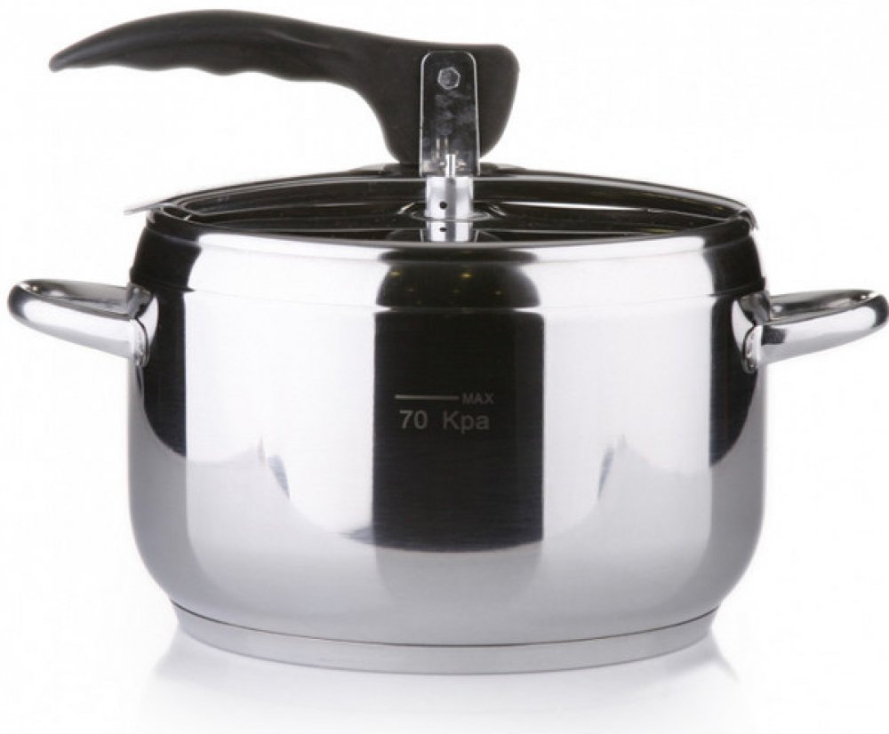 Tlakový hrnec 3,5 LTlakový hrnec o objemu 3,5 litru je vyroben z nerezavějící oceli. Používá se k přípravě vývarů, guláše, dušení masa apod. Vybaven je sendvičovým dnem a plastovým pákovým uzávěrem. S tlakovým hrncem připravíte jídlo mnohem rychleji než v klasickém nerezovém hrnci. Je vhodný pro všechny typy sporáků.Technické údaje:Objem: 3,5 lHmotnost: 1,5 kgNávod na použití [PDF, 0.43 MB]Návod n...