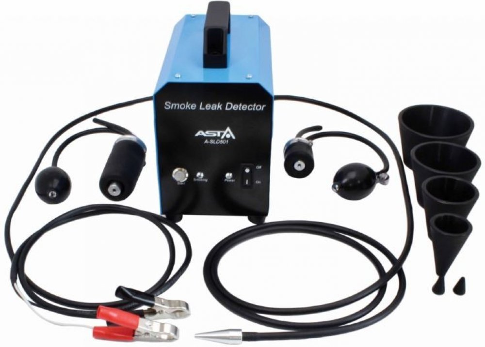 Generátor kouře pro detekci netěsností Asta A-SLD501Inovativní zařízení pro efektivní a rychlou detekci netěsností různých systémů. Pomocí generovaného kouře, který se zavádí například do sání motoru, lze odhalit i nejmenší netěsnosti vedoucí ke ztrátám výkonu. Zařízení je vhodné použít všude tam, kde je nutno odhalit různé netěsnosti nebo úniky. Například v palivovém, výfukovém nebo sacím systému vozidel, v různých nádržích, vzdušnících a podobně..