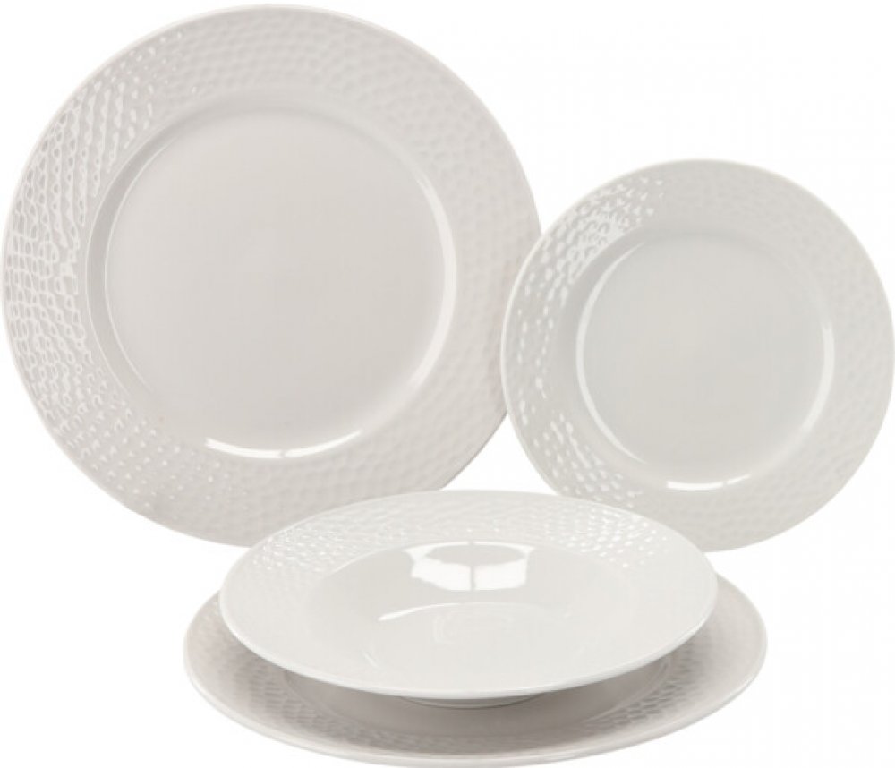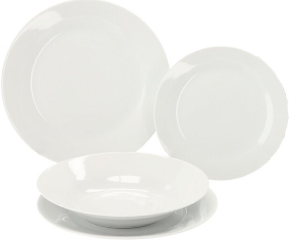 Jídelní souprava 18ks, bíláJídelní souprava je neoddělitelnou součástí každého rodinného setkání nebo posezení s přáteli. Tento komplet se skládá z 18 dílů a je určen pro 6 osob. Můžete si vybrat mezi soupravou s jemnými vzory nebo hladkou pro ty, kteří preferují minimalistický styl. Tato souprava je ideální také jako dárek. Poskytuje vše potřebné pro pohodlné stolování a je vyrobená z vysoce kvalitního porcelánu. Technické údaje:Souprava pro 6 osob (18 dílů)Vyrobeno z vysoce kvalitního porcelánuPevné provedeníObsah soupravy:6x hluboký talíř, průměr 23,3 cm6x mělký talíř, průměr 24,3 cm6x dezertní talíř, průměr 19,5 cm