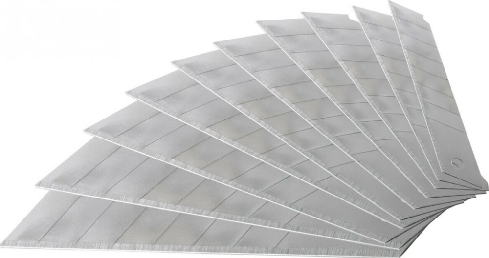 Náhradní nože do řezačky 18 mm 10ksNáhradní segmentové čepele určené pro univerzální a tapetovací nože se šířkou 18 mm. Vyznačují se vysokou odolností, dlouhou životností a přesným řezem při práci v dílně, na stavbě i v domácnosti. Čepele jsou vhodné na řezání kartonu, tapet, fólií, koberců, kabelů, pásek a dalších materiálů. Segmentová (lámačka) konstrukce umožňuje po otupení jednoduše ulomit pou...