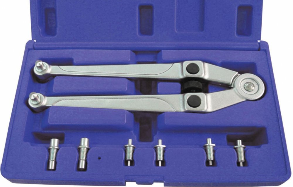 Přípravek na řemenice profi Asta A-486Přípravek na řemenice s otvory na piny. Sada obsahuje kleště a 8 pinů s různými průměry. Celá sada je uložena v praktickém plastovém kufru.Obsah balení:2 piny? 2,5 -? 4 (mm)2 piny? 3 -? 5 (mm)2 piny? 6 -? 8 (mm)2 piny? 7 -? 9 (mm)klíč na kladky s délkou 245 mm, rozteč: 20 - 100 mm