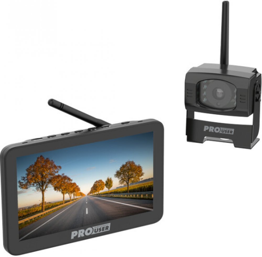 Bezdrátový digitální kamerový set Pro-user - barevný 7" LCD monitor s couvací kamerou s nočním viděním, ideální pro umístění nad spz.Pro lepší orientaci při couvání, je v kameře zabudovaná trajektorie (na displeji se zobrazují přibližovací čáry k překážce), lze vypnout a zapnout tlačítkem na LCD.Kamerový systém pomáhá při parkování na parkoviště, couvání, vyjíždění. Je vhodný pro osobní automobily, autobusy, karavany, dodávky, atd. Systém aktivuje couvací kameru automaticky při zařazení zpátečky.K systému lze připojit ještě další kameru s cinch konektorem nebo je možné připojit libovolný externí zdroj kompozitního video signálu – DVD,…Digitální technologie umožňuje perfektní obraz bez rušení Wi-Fi nebo Bluetooth.Velice snadná montáž - cca 60 minutDigitální kamera-2,4 GHz bezdrátový kamerový systém, barevný obraz-1 / 4'' color CMOS senzor s rozlišením 640 x 480 pixelů-zorný úhel : 110° horizontálně a 80° vertikálně-vodotěsná kamera : IP67 standard-instalace na jakýkoli vůz, instalace je velice jednoduchá, sada obsahuje kompletní kabeláž pro montáž-napájení 12V nebo 24V7" LCD-Nastavení Jas a Kontrast-Nastavení úhlu kamery-Zpětné zrcátko s klipy k přidělání na Vaše zrcátko-Napájení : 12V DC z cigaretového zapalovače, lze zabudovat i na pevné napájení 12V ve vozidle-Napětí za provozu : 350 mA-Rozlišení : 1920x1080 pixel-Provozní teplota od -10° C do +50° C-Velikost LCD 7“ (d x š x v): 210 x 25 x 170 mm (uprostřed)-na krajích 75mm- napájení 12V nebo 24VSada obsahuje :1 kameru (s nočním viděním IR LED diod), montáž vhodná nad spz1 vysílač1 LCD monitor 7“ s přijímačem1 síťový kabel k monitoru / přijímače1 síťový zdroj pro kameru / snímače1 kompletní příslušenství pro montáž ( spojky kabelů, spojovací pásky atd.)1 kabeláž pro externí zdrojCertifikované zařízení schválené Ministerstvem dopravy, CE, E8