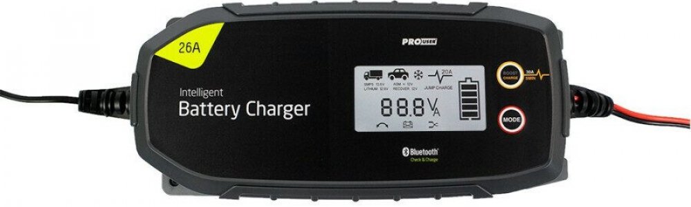 Digitální nabíječka řízená mikroprocesorem PROUSER IBC 26000BInteligentní nabíječka s technologií Bluetooth a bezplatnou aplikací pro Smartphony. Lze provádět každodenní provoz ( ovládání nabíječky) pomocí mobilního telefonu. Stále můžete sledovat v jakém stavu je nabíjení.Inteligentní nabíječky mají zabudovaný mikroprocesor, díky kterému jsou akumulátory vždy přezkoušeny. Podle stavu nabití akumulátoru se nabíjejí optimálním proudem. Pokud je akumulátor zcela nabitý, přístroj se automaticky přepne do režimu udržování nabitého stavu.Nabíječka baterií do automobilů, nákladních vozidel, motocyklů, vozidel na sníh, traktorů, osobních plavidel, člunů atd. ICB 26000B je řízena AD mikroprocesorem s 10-stupňovou nabíjecí křivkou. Mikroprocesor snímá stav baterie a řídí regulátor, aby dodával baterii správný proud a napětí (nabíjecí křivka). To má ten nejlepší efekt na nabíjení a prodlužuje životnost baterie.• Konstrukční řada odolná proti škodám s ABS krytem• Mikroprocesor AD s 10-stupňovými nabíjecími vlastnostmi pro použití v autech a v motocyklech • Vhodná pro všechny typy 12 / 24V olověných, AGM bez údržbových a gelových článkových baterií v rozsahu 25-500Ah a LITHIOVÝCH LiFePO4 baterií v rozsahu 25-250 Amp • S jištěním proti jiskření, s ochranou proti zkratu, přehřátí, přepólování • S vyrovnáním teplot a napětí • Voděodolnost IP20• Vhodné pro autobaterie - 12 a 24V olověné, gelové, AGM a 12,8 V LITHIUM, WET, 12,8 čtyřčlánkové• Recovery tlačítko - obnova staré beterie (ne pro Lithiové baterie)• LCD displej pro dokonalý přehled• Ukazatel stavu baterie na displeji• Udržovací nabíjení při plně nabité baterii• Rychlonabíjení 30A• Ocharana IP20• Součástí balení je kabel se svorkami na autobaterii a kabel s očky pro motobaterie• Pracovní teplota 0 - 40 C• Velikost (dx š xv): cca 210 x 80 x 50 mm • Hmotnost: 0.990 kg • Certifikace : TÜV-/GSNabíjecí proud:- 12V - 26 Amp- 24V - 13 Amp- 13,6V - 3Amp Vstup - 220V–240V ~ 50Hz Nabíječka má zabudovaný IBT1 Bluetooth s aplikací na Smartphone - na telefonu vidíte v jakém je stavu, kolik procent je nabito, můžete také nabíjení přepnout, vypnout, atd.Výrobce - PROUSER Německo