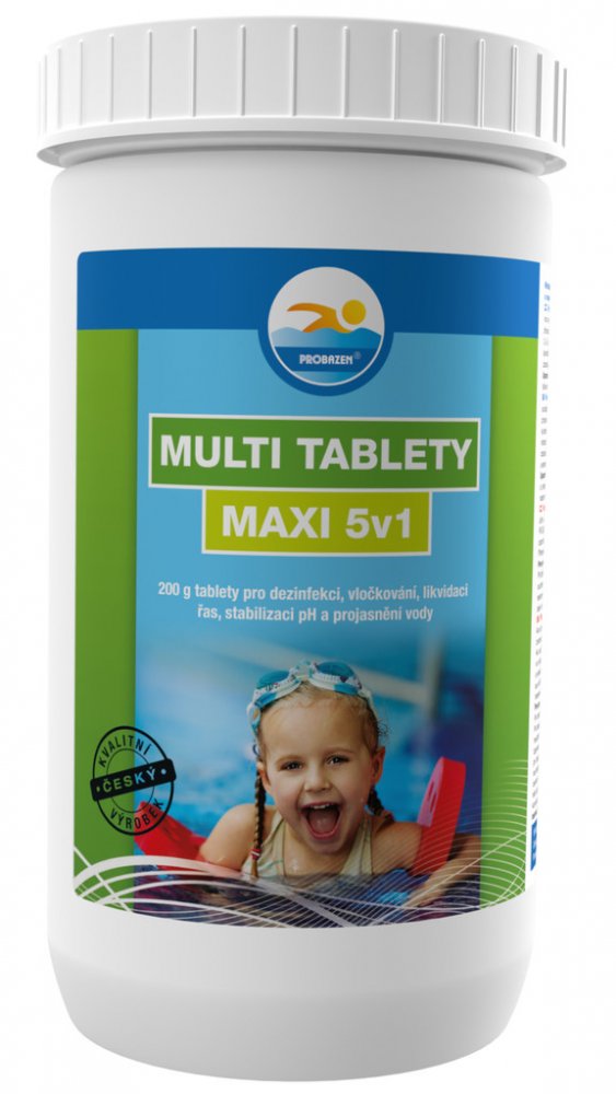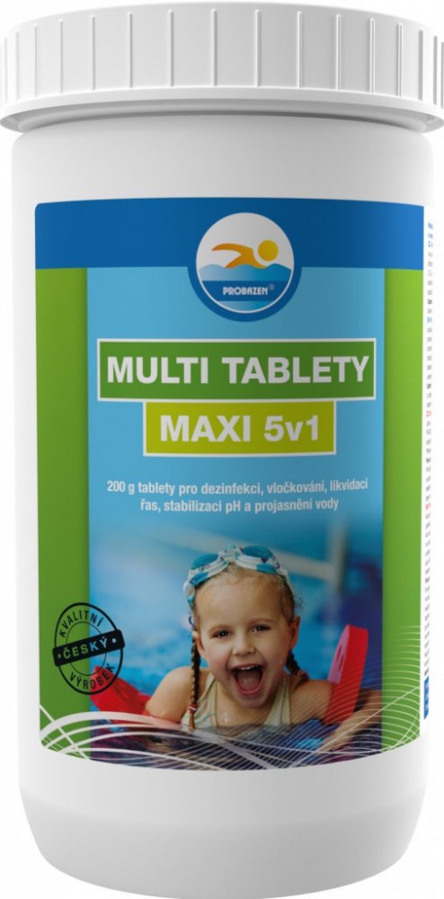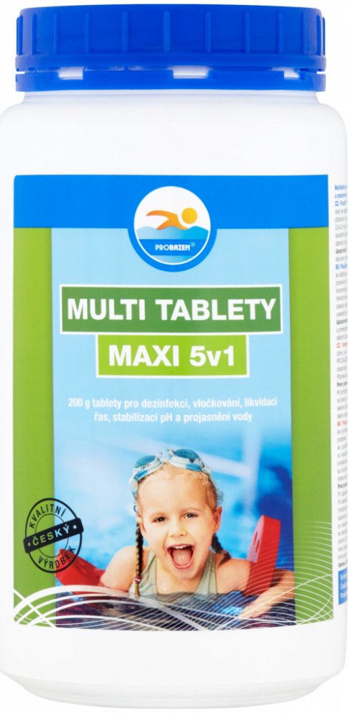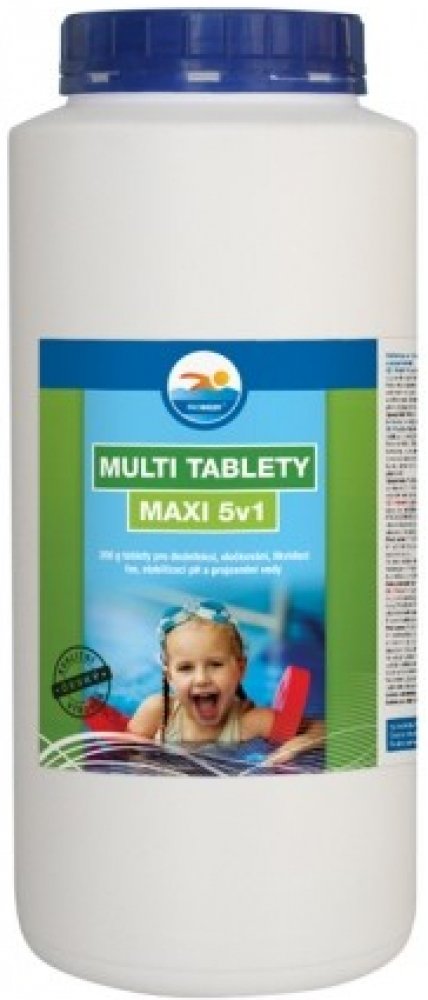 Multitablety pro dezinfekci, vločkování, likvidaci řas, stabilizaci pH a projasnění vody. 5 kusů 200g tablet.