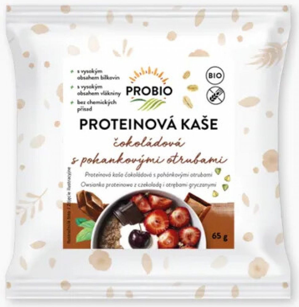Probio Kaše proteinová čokoládová s pohankovými otrubami BIO 65 g. Proteinová kaše je skvělou volbou pro ty, kteří hledají vyvážený a zdravý start dne. Tato lahodná a výživná snídaně kombinuje ovesné vločky a pohankové otruby s bohatým obsahem proteinu, dlouhodobě zasytí a dodá energii na celé dopoledne. S příjemně jemnou texturou a bohatou chutí je tato proteinová kaše perfektní kombinací zdraví a lahodnosti pro všechny, kteří chtějí začít den správně a plni energie. A navíc je bezlepková.