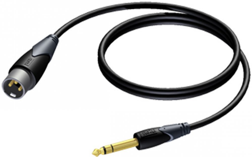 Hotový mikrofonní symetrický kabel, osazený nalisovanými konektory ProCab Jack přímý 6,3mm Stereo samec XLR 3-pin samec s pozlacenými piny, tělo kov-plast, použitý flexibilní kabel ProCab MC106, který se příjemně smotává, průřez vodičů 0,87mm, barva černá. Kabel je vhodný pro mobilní aplikace i pevné instalace. Délka kabelu 10m. | Hotové kabely | XLR - JACK 6.3