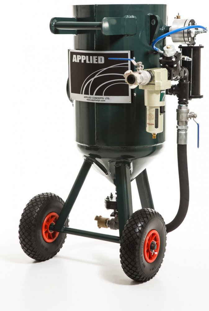 - Kuželové dno zajišťuje dokonalý přísun abraziva do dávkovacího ventilu