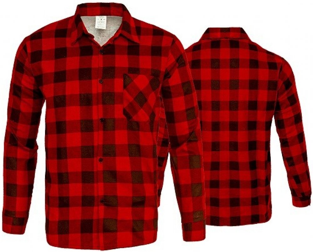 Flanelová košile ze 100% bavlny o gramáži 170 g/m2, zapínání na knoflíky, spodní zakončení lemem, výstřih s límečkem, náprsní kapsa, rukávy zakončené vzorem na knoflíky. Vyrobeno v Polsku.