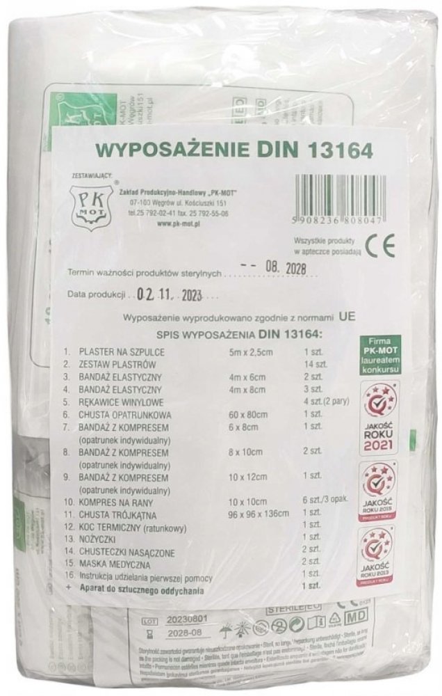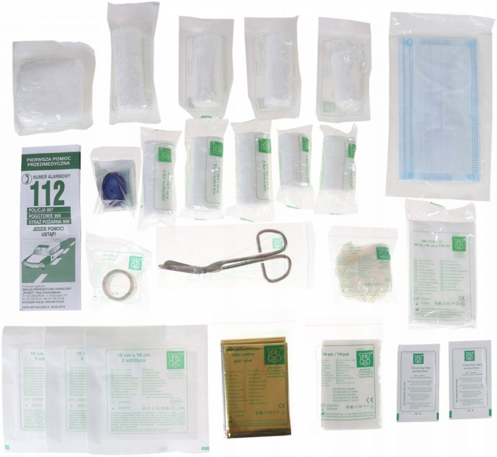 - ✅s náplní do lékárničky PK-MOT, sestavenou podle přísné normy DIN 13164.