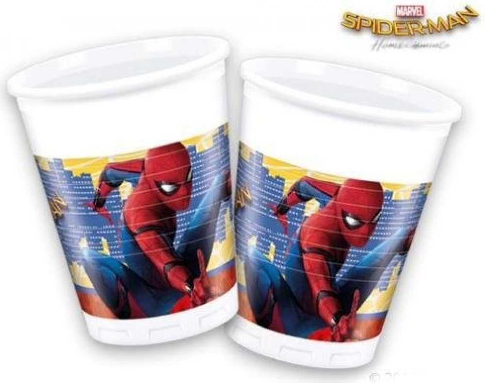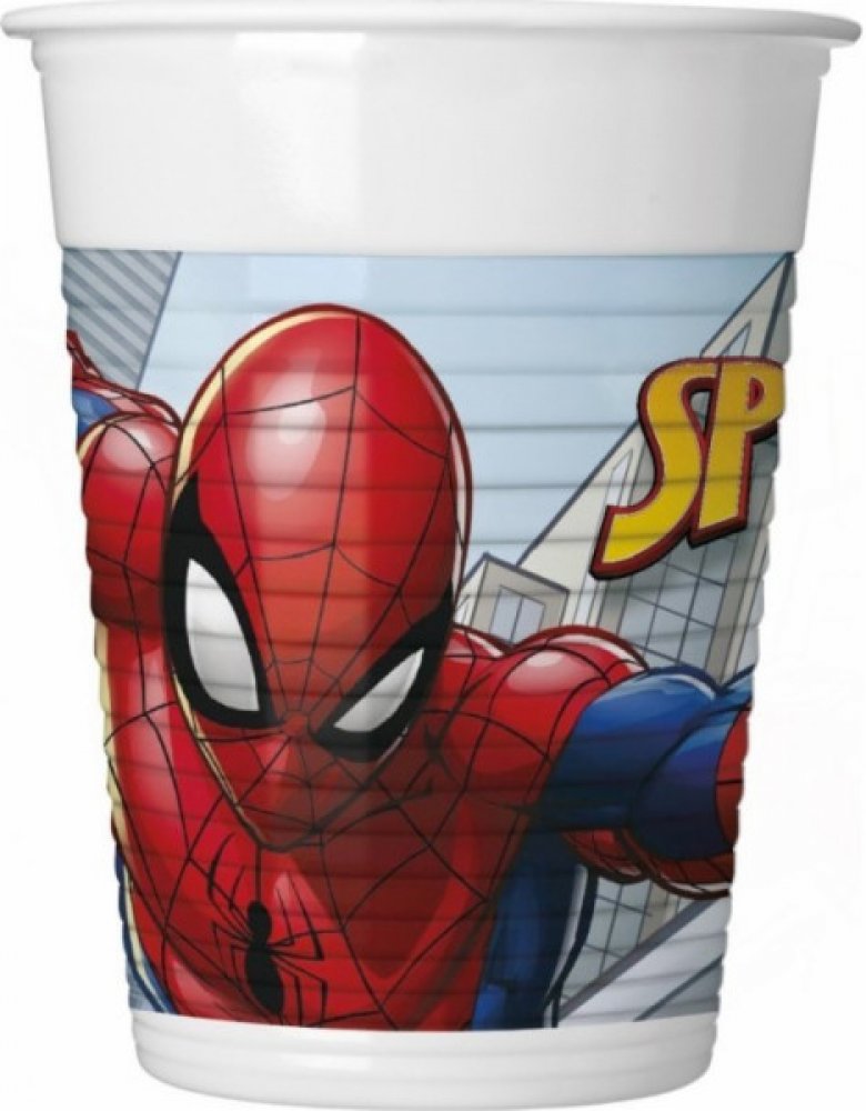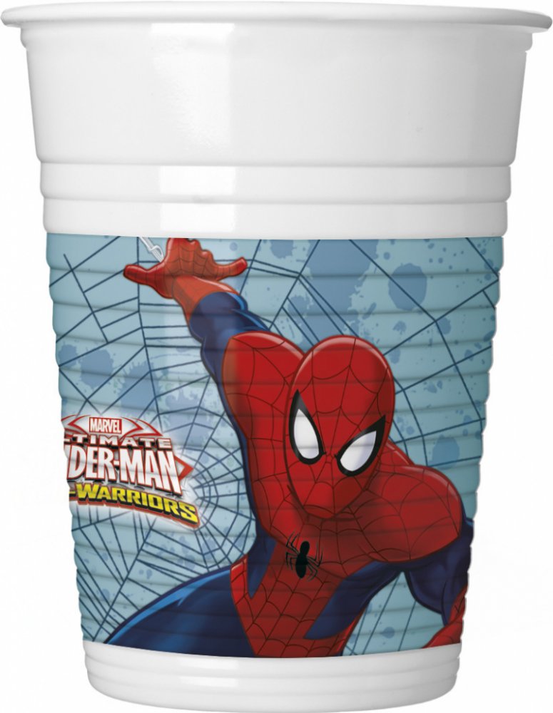Plastové kelímky s oblíbeným hrdinou Spidermanem, které nesmí chybět na žádné oslavě.