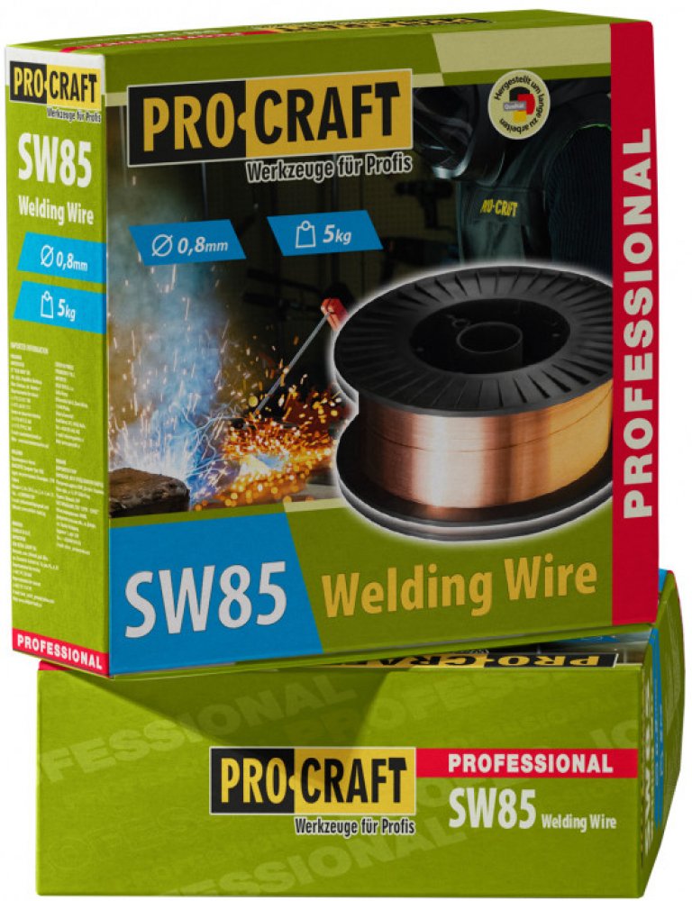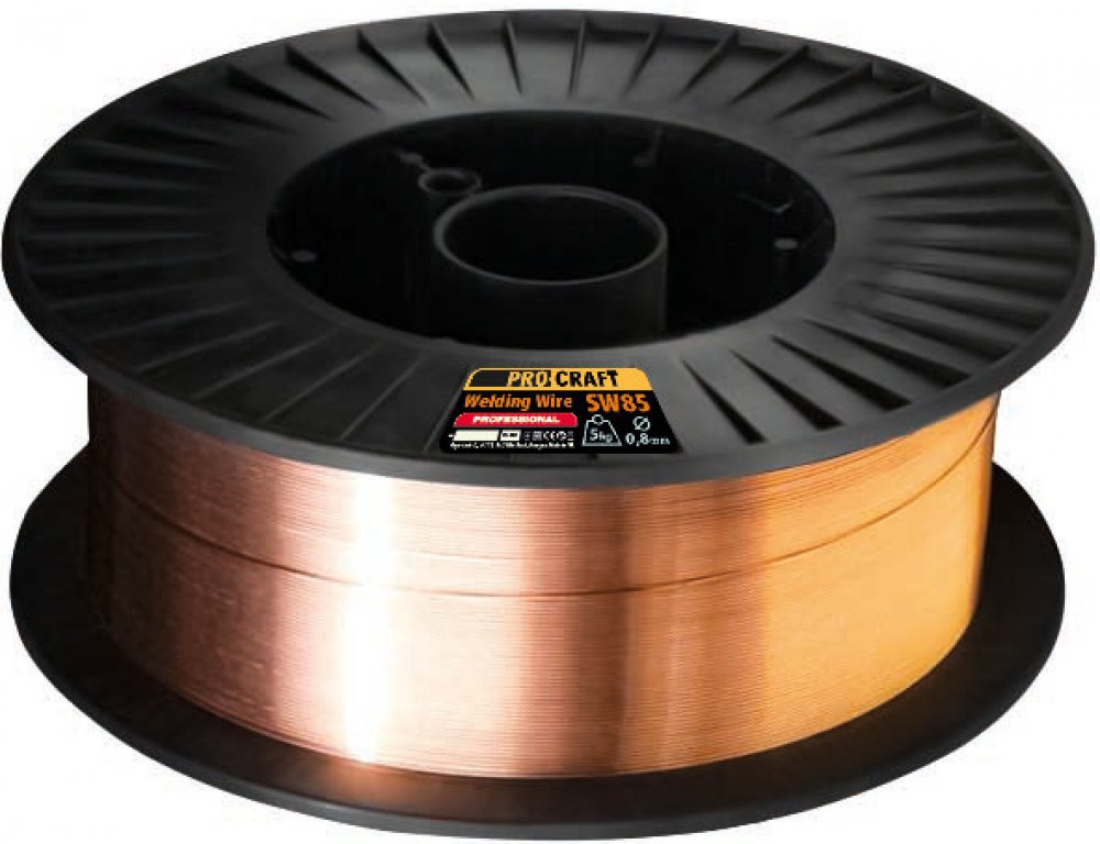 Poměděný svařovací drát Procraft SW85 typu ER70S-6 se používá pro svařování uhlíkových a nízkouhlíkových ocelí metodou MIG/MAG. Je široce používán pro svařování potrubí, kovových konstrukcí, v lodním a automobilovém průmyslu a ve stavebnictví. Je vhodný pro svařování tenkých plechů. Aby bylo možné získat kvalitní svar, musí být povrch svařovaných dílů řádně očištěn a připraven odstraněním rzi a nátěrů barev nebo oxidů. Drát se dodává navinutý na plastové cívce. Je vhodný pro svařování v ochranném plynu CO2 a ve směsi plynů Ar a CO2.