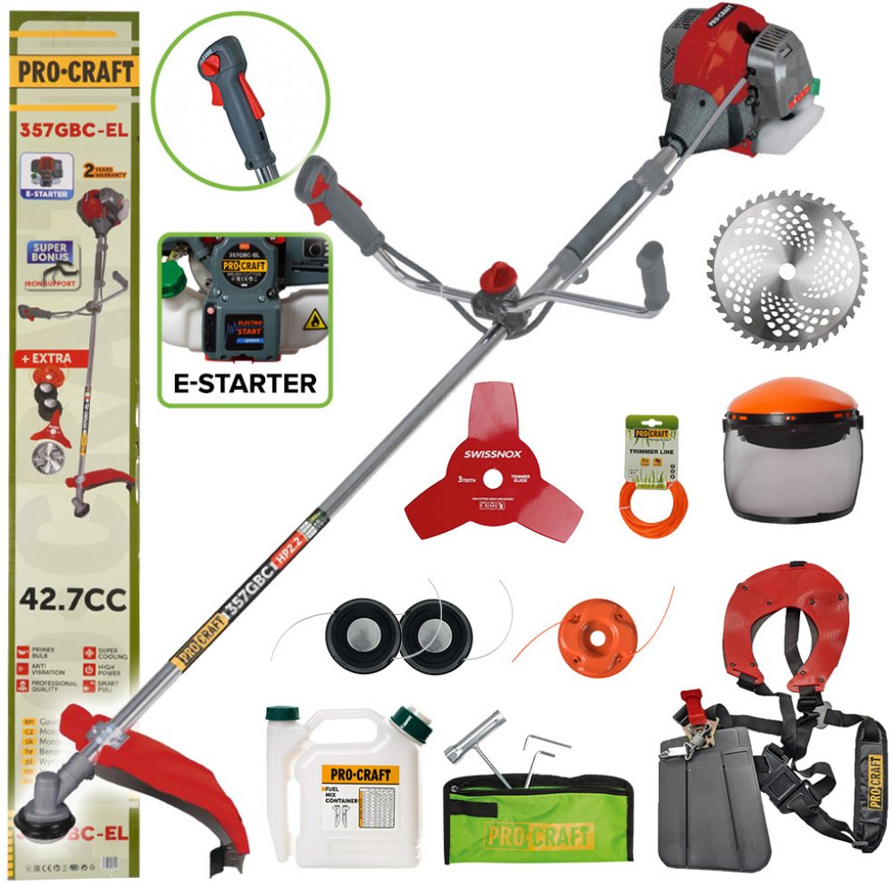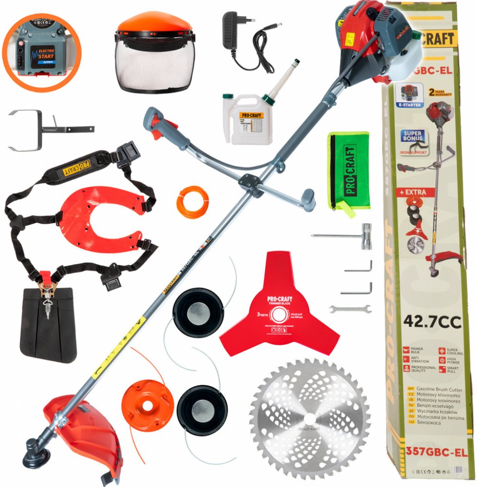 Procraft 357GBC-EL je skvělou volbou pro každého, kdo hledá spolehlivý, výkonný a snadno ovladatelný křovinořez s moderním elektro startérem.