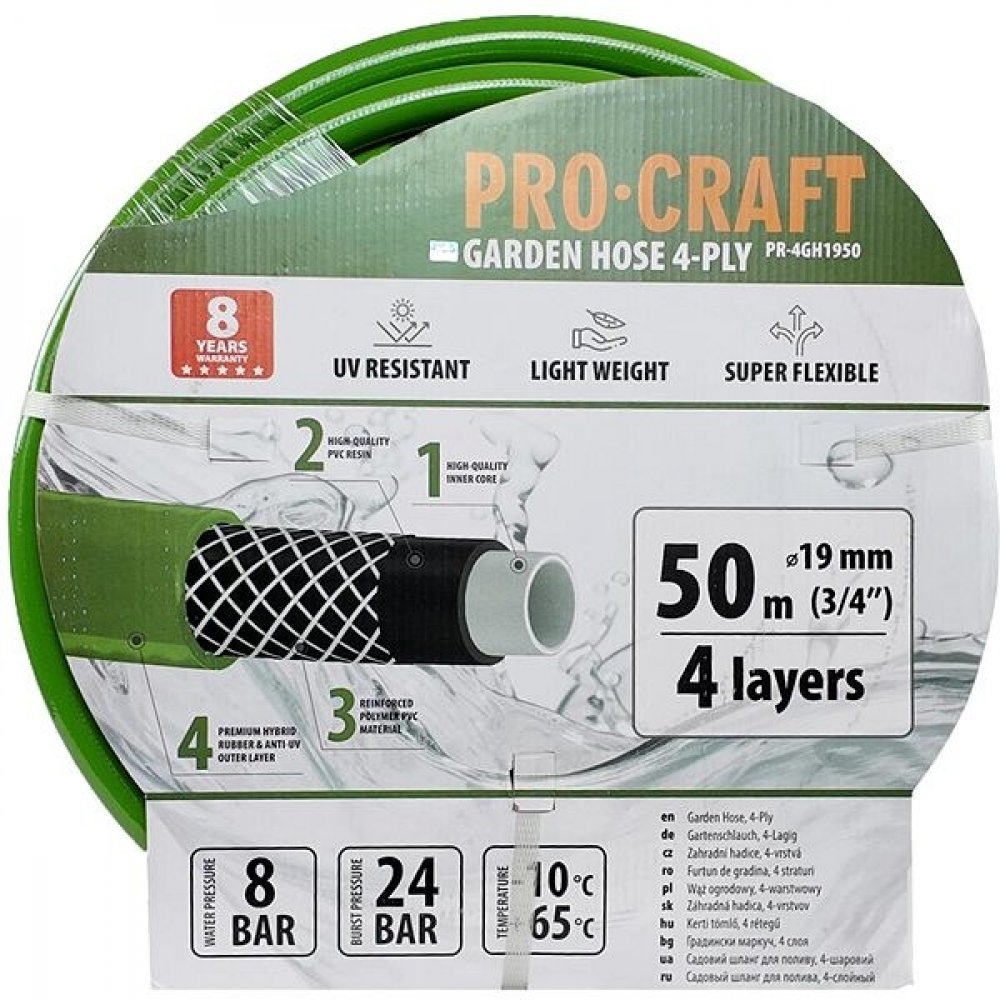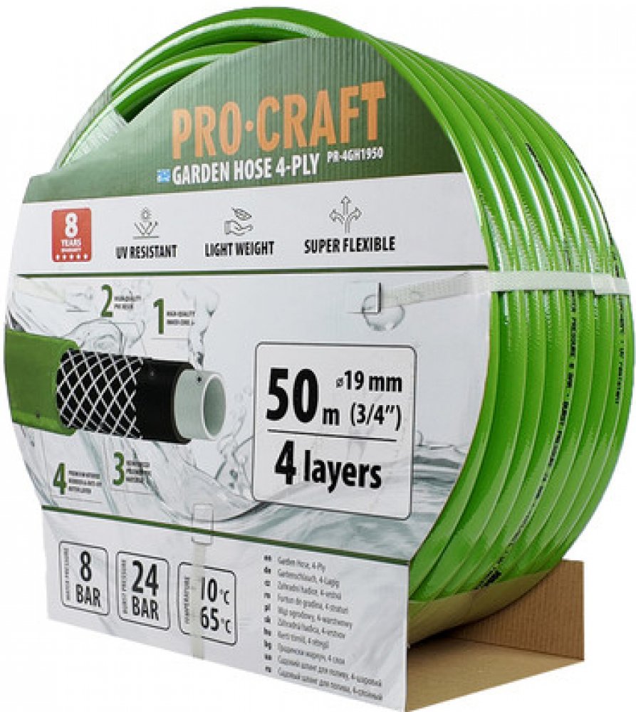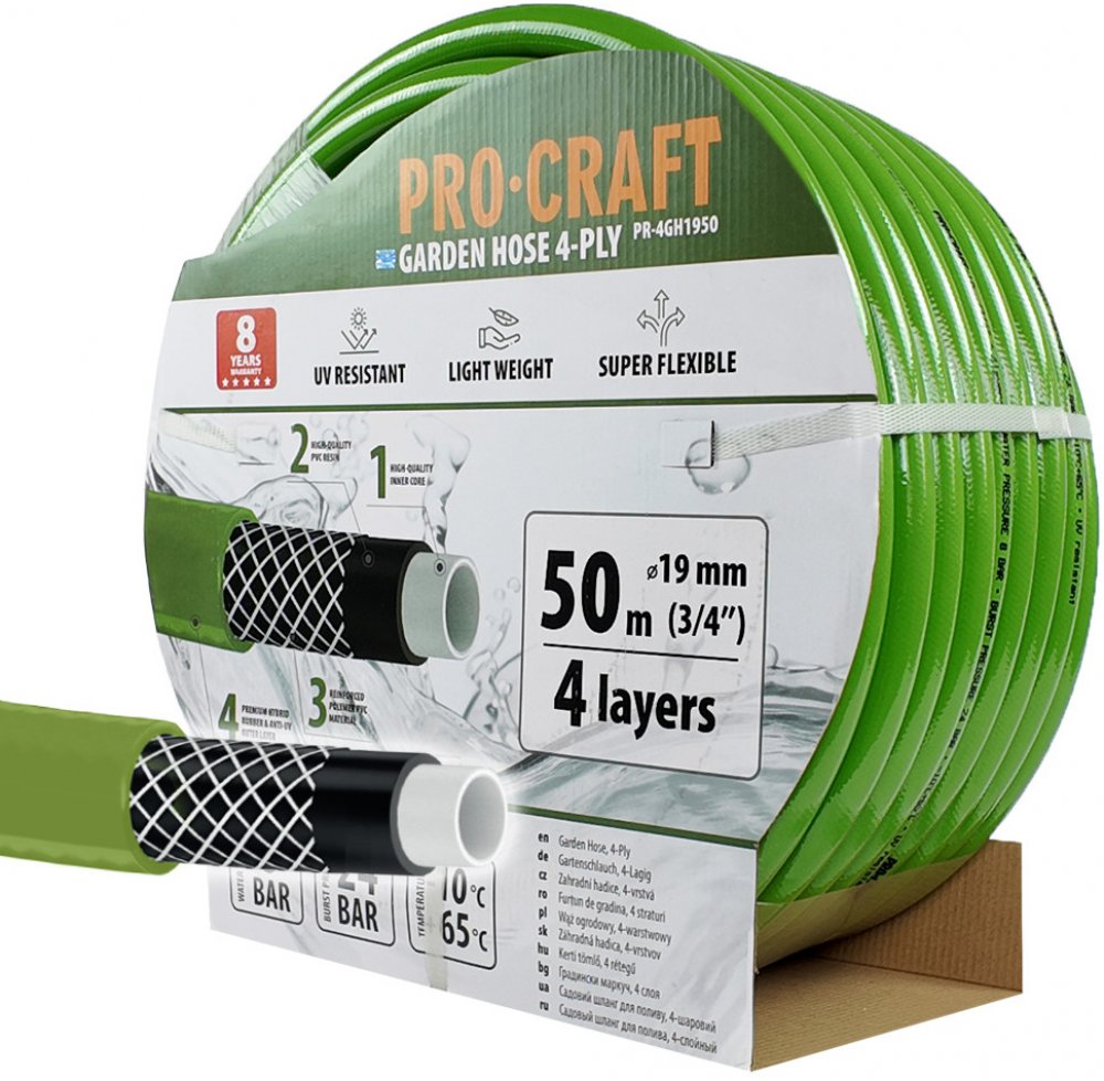 Procraft - Zelená zahradní hadice Procraft PR-4GH1950 4 vrstvy, 3/4" 50 m | PR-4GH1950, 6976174162759 z kategorie Dům a zahrada | Zahrada | Zavlažování | Zahradní hadice od výrobce Procraft Zelená zahradní hadice Procraft PR-4GH1950 4 vrstvy, 3/4" 50 m
