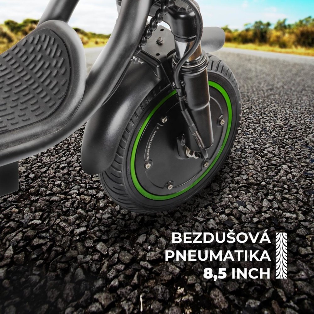 - 8,5" bezdušové pneumatiky – žádné starosti s dušemi