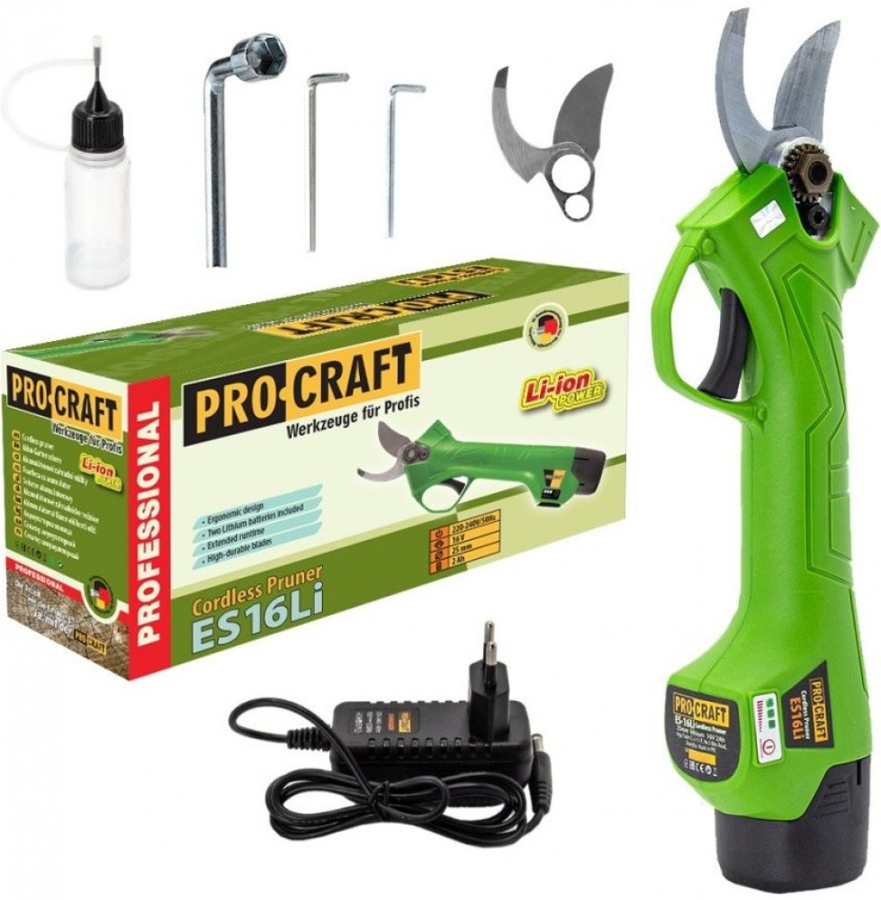 Tato kombinace vlastností dělá z Procraft ES16Li1B ideální nářdadí pro efektivní a pohodlné stříhání větví v domácí zahradě nebo u menších komerčních zahradních projektů.