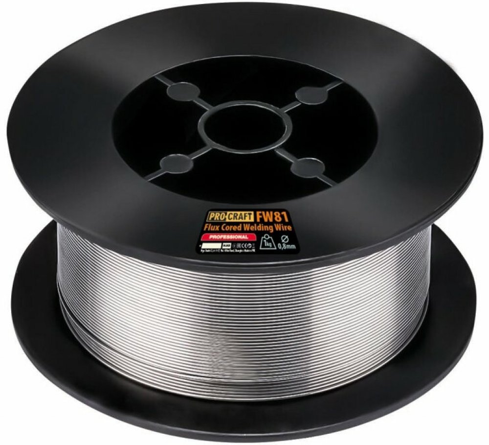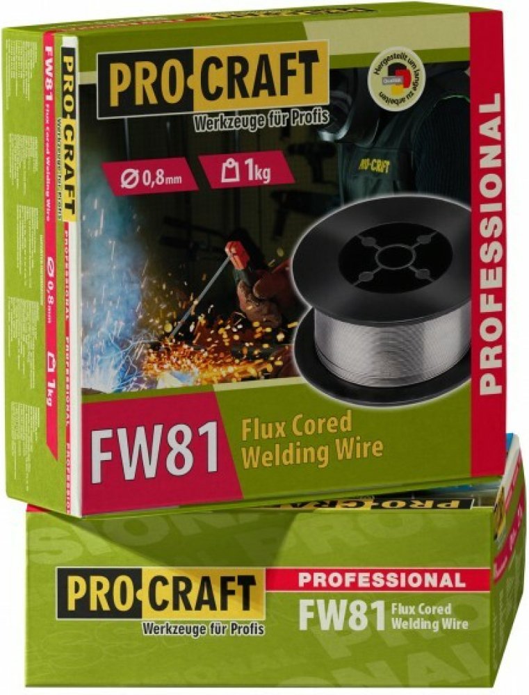 Trubičkový (dutinkový) svářecí drát průměru 0,8 mm (nemusí se vyměnit podavací kolečko a průvlak) Hmotnost 1000 g Průměr cívky: 100 mm Upínací otvor: 15 mm. plněný svařovací drát s vlastní ochranou či FLUX, nelegovaný. Nepotřebujete lahev s ochranným směsným plynem (Co2). Plněný trubičkový drát má v dutince vlastní ochranu a lze použít i tam, kde by použití plného drátu v kombinaci s ochranným plynem bylo problematické. Nejčaastějším příkladem je svařování venku kdy by při použití plného drátu hrozilo "odfouknutí" ochranného plynu a tím i znehodnocení sváru.