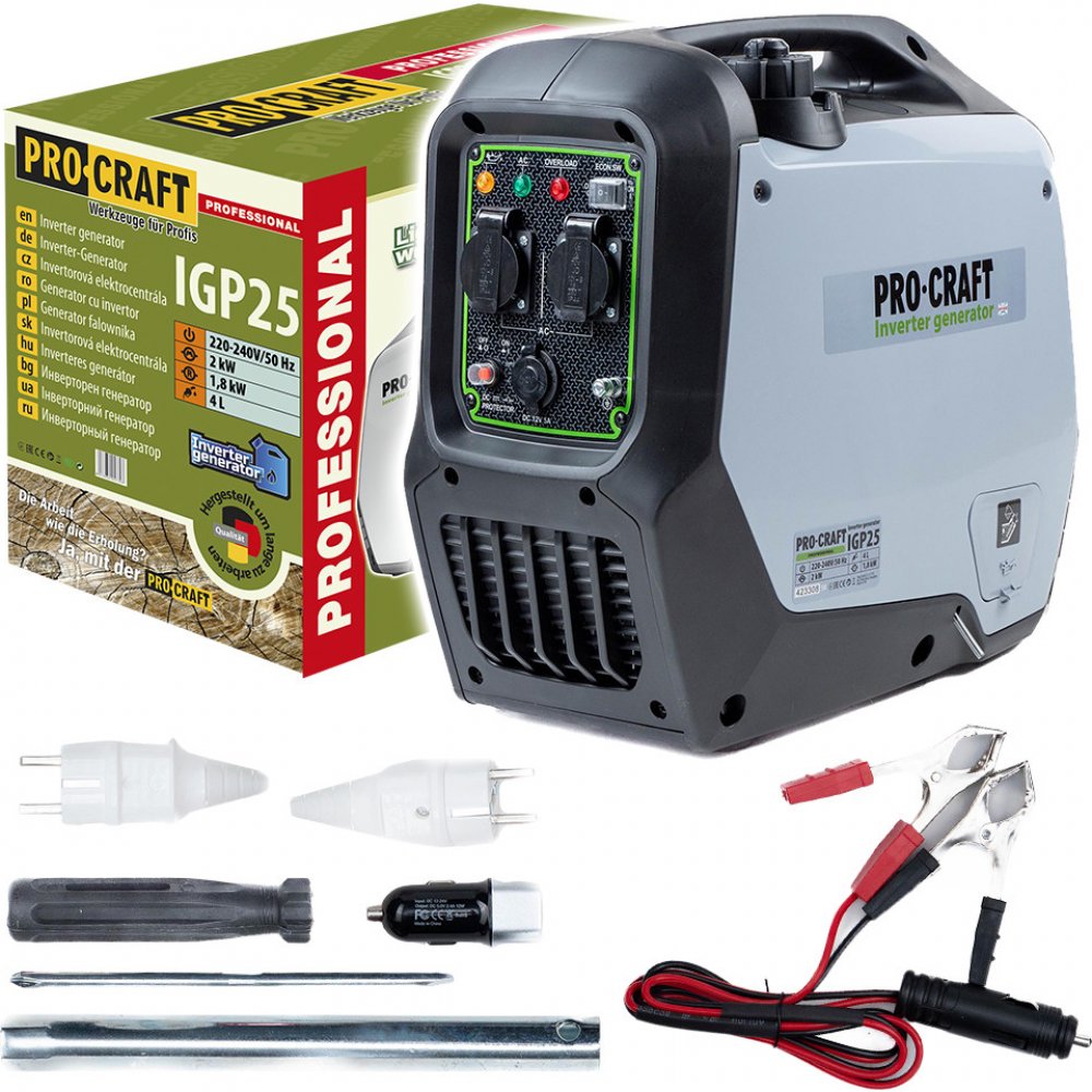 Procraft IGP25 je lehká, úsporná a tichá elektrocentrála s invertorovou technologií, která nabízí čistý a stabilní výkon pro vaše zařízení. Díky kompaktním rozměrům a nízké spotřebě je
