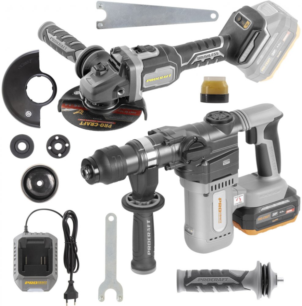 Sada aku vrtací kladivo Procraft Industrial HD20A a úhlová bruska Procraft Industrial AG125Bbb