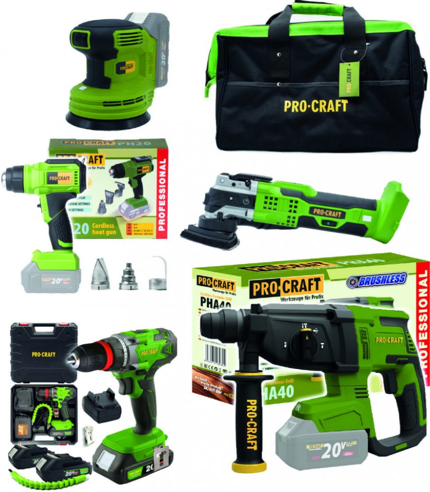 Komplexní sada aku nářadí Procraft obsahuje šest kvalitních a všestranných strojů, dvě baterie 20V 2Ah a nabíječku. Tato sada je ideálním řešením pro profesionály i náročné kutily, kteří hledají spolehlivé nářadí pro široké spektrum aplikací.